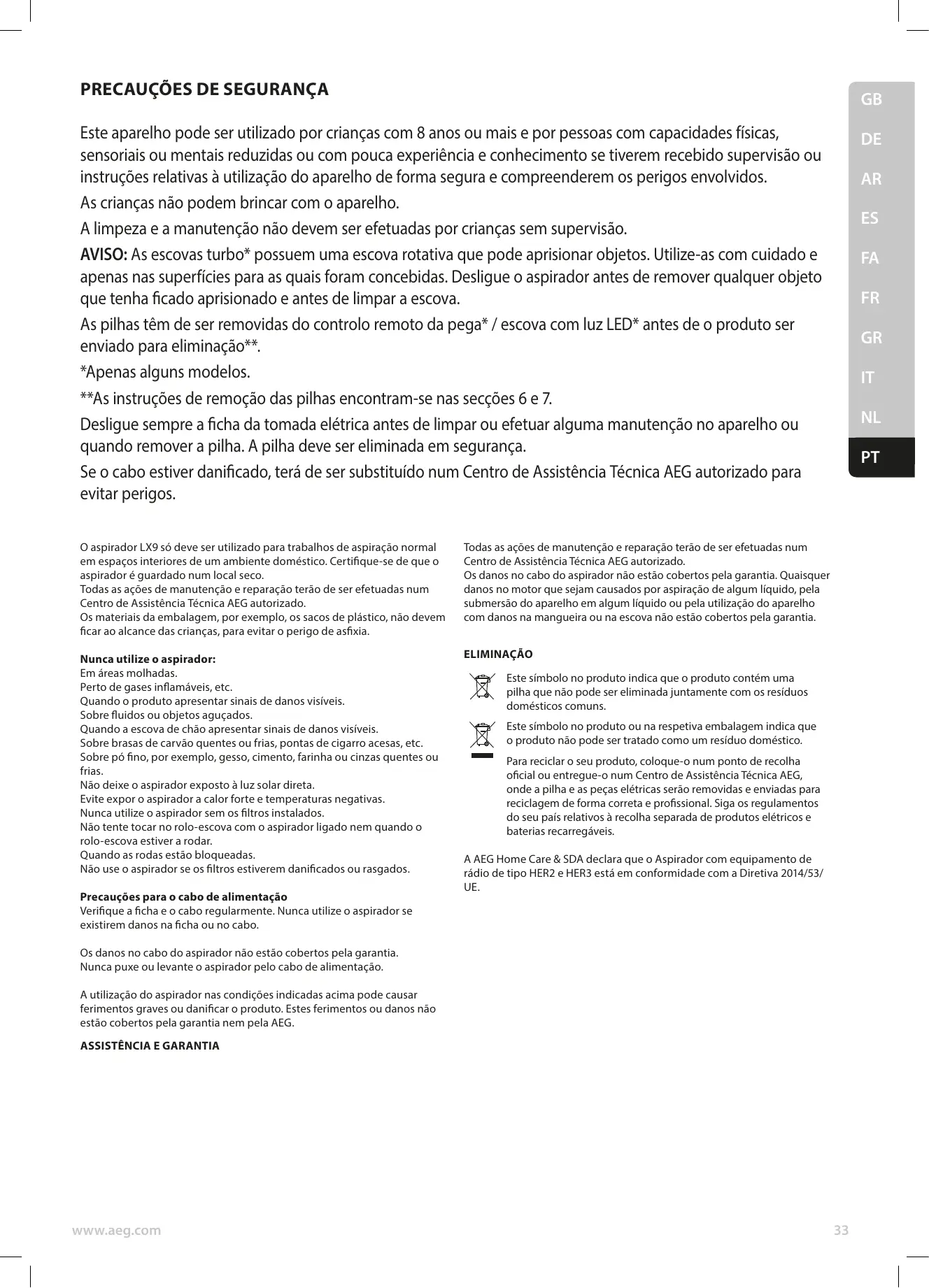 Encontre gratuitamente o manual do aparelho LX9-3-MG AEG em formato PDF.