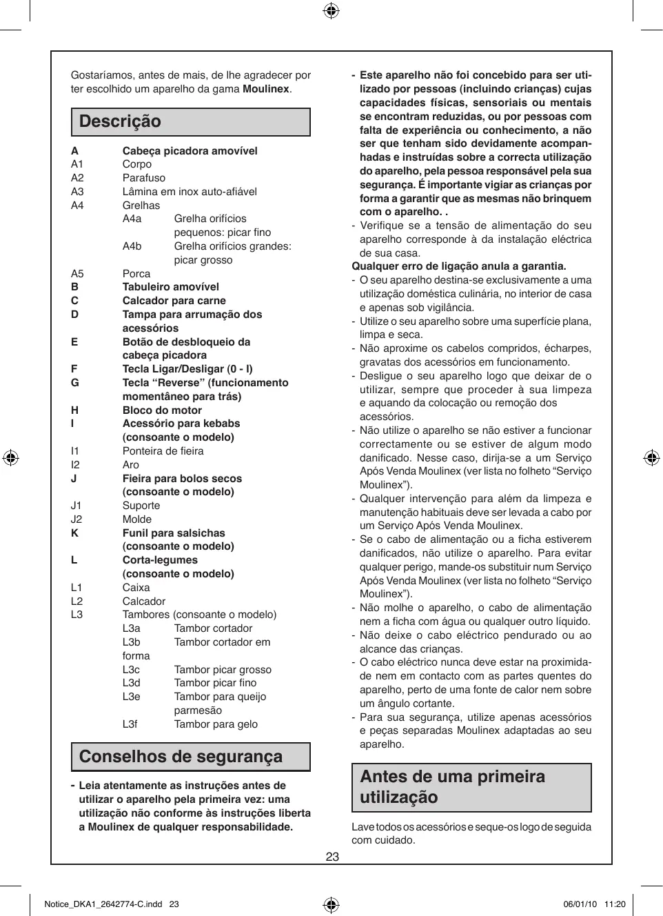Encontre gratuitamente o manual do aparelho DKA 242 MOULINEX em formato PDF.