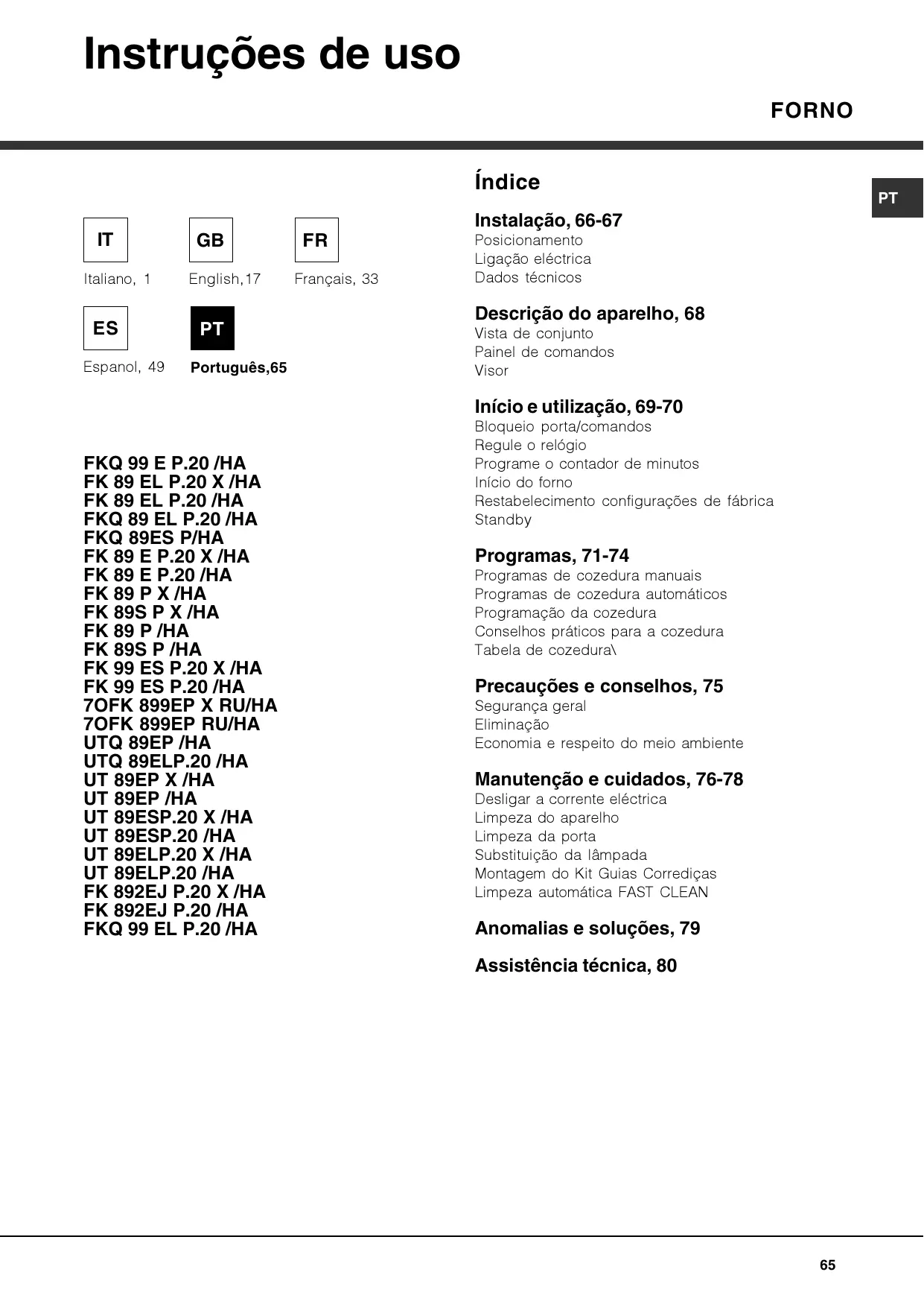 Encontre gratuitamente o manual do aparelho UTQ89EPHAICES HOTPOINT em formato PDF.