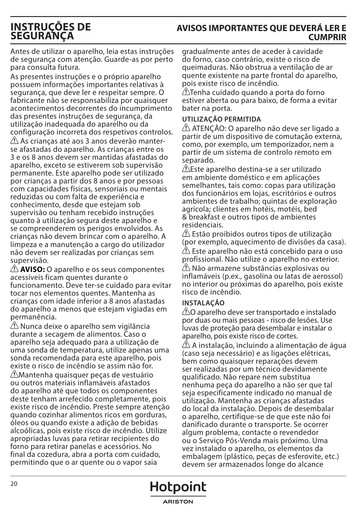 Encontre gratuitamente o manual do aparelho MS3734IXHA HOTPOINT em formato PDF.