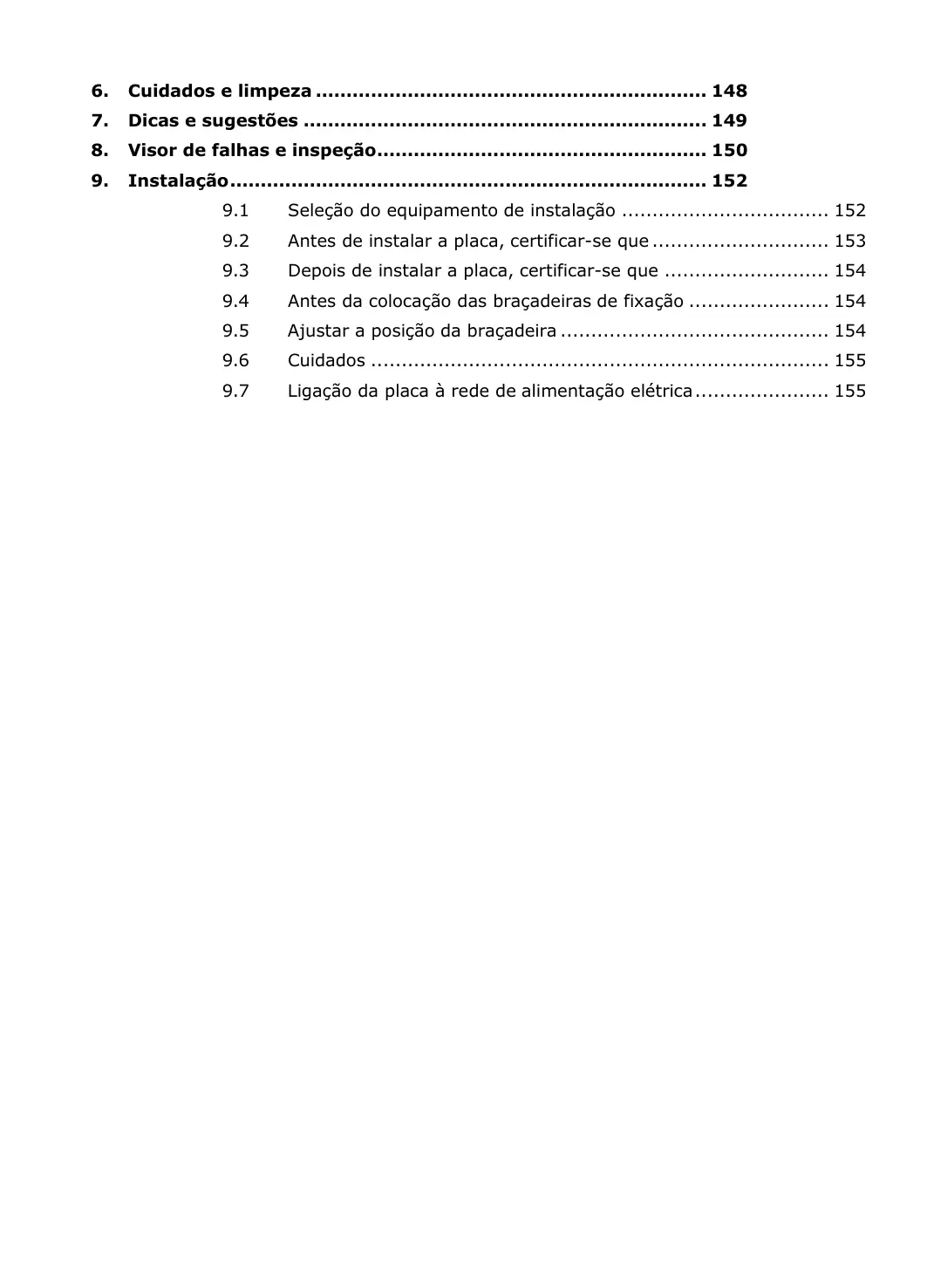 A superfície inferior e o cabo de alimentação da placa não são acessíveis após a instalação.