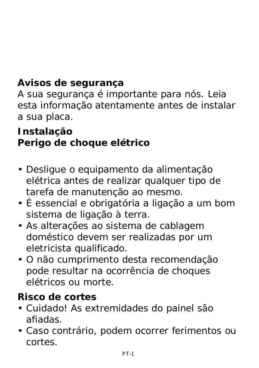 • Caso contrário, podem ocorrer ferimentos ou cortes. PT-1 Instruções de segurança importantes