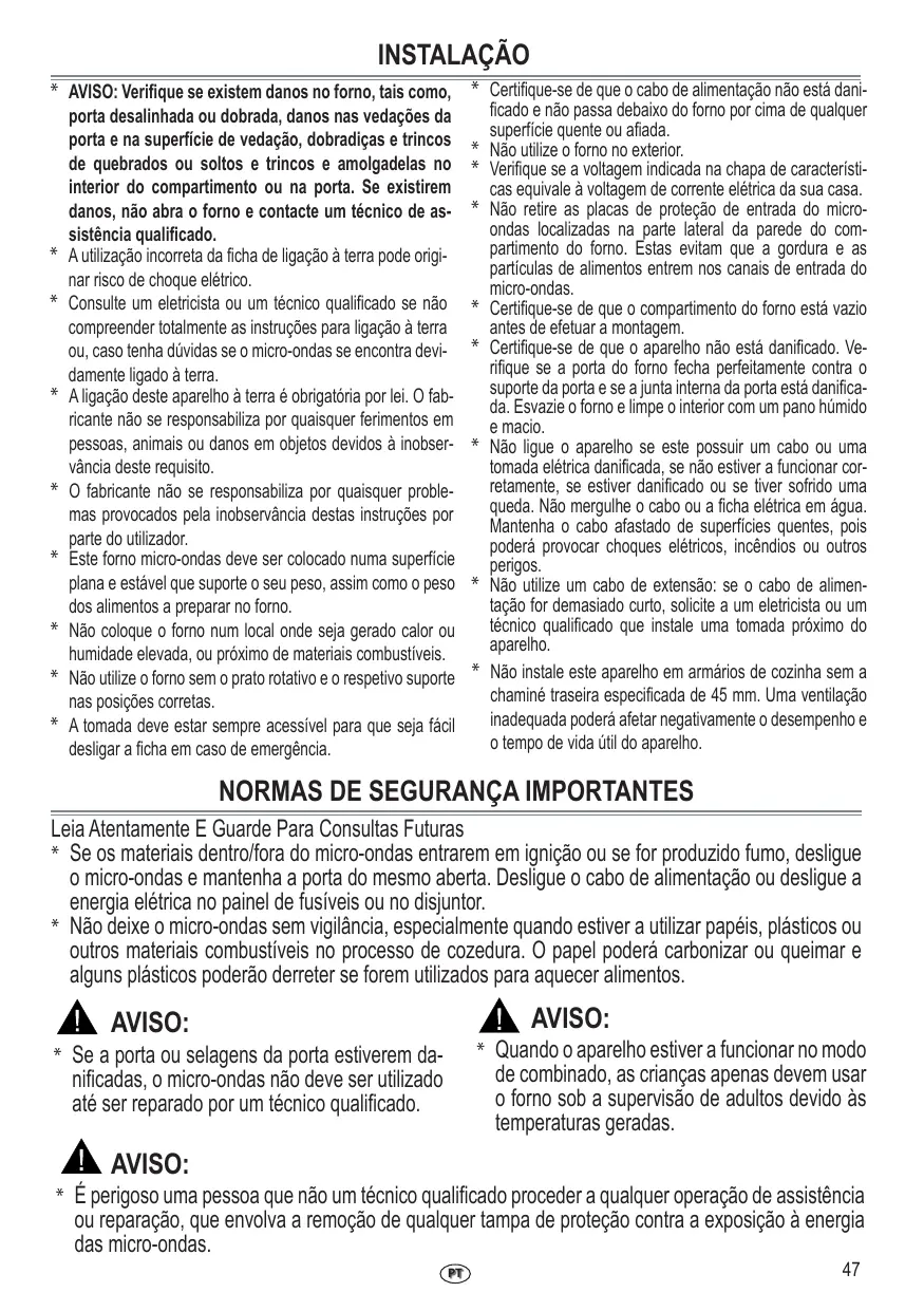 Une utilisation incorrecte de la prise de terre peut entraîner un risque de choc électrique. Consultez un électricien ou un technicien qualifié si les instructions de mise à la terre ne sont pas entièrement comprises ou s’il existe un doute quant à savoir si le four micro-ondes est correctement connecté à terre. La mise à la terre de cet appareil est obligatoire. Le fabricant décline toute responsabilité en cas de blessures infligées à des personnes, à des animaux, ou de dommages matériels qui découleraient du non-respect de cette obligation. Le fabricant décline toute responsabilité si l'utilisateur ne respecte pas ces instructions. Ce four à micro-ondes doit être placé sur une surface plane et stable afin de supporter son poids et celui des aliments à cuire dedans. Ne pas placer le four dans un endroit chaud ou humide ou à proximité de matériaux combustibles. Ne pas faire fonctionner le four sans son plateau tournant ou son support dans les positions appropriées. La prise doit être vraiment accessible afin de pouvoir être débranchée facilement en cas d'urgence.