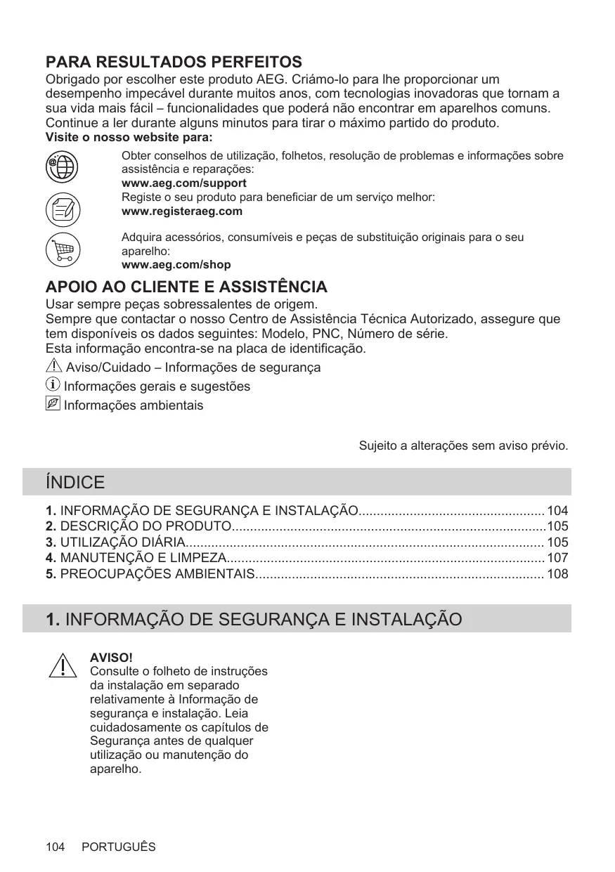 2 Obtenir des conseils d’utilisation, des brochures, un dépanneur, des informations sur le service et les réparations : www.aeg.com/support Enregistrer votre produit pour un meilleur service : www.registeraeg.com Acheter des accessoires, consommables et pièces de rechange d’origine pour votre appareil : www.aeg.com/shop
