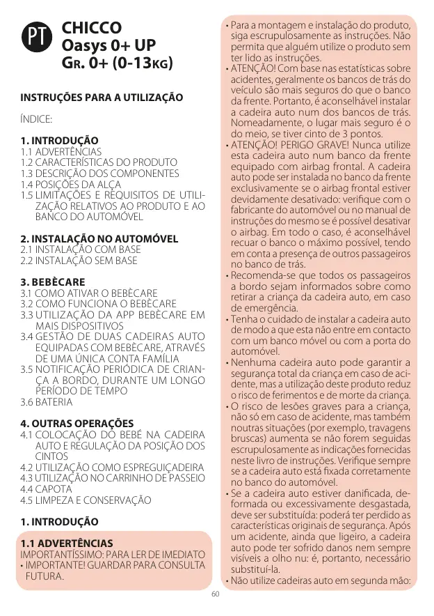 Encontre gratuitamente o manual do aparelho COSI OASYS UP CHICCO em formato PDF.