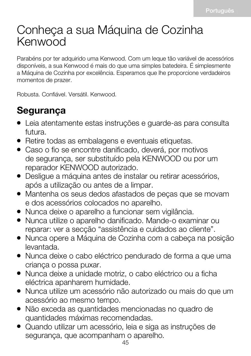 Encontre gratuitamente o manual do aparelho CHEF XL KPL9000S KENWOOD em formato PDF.