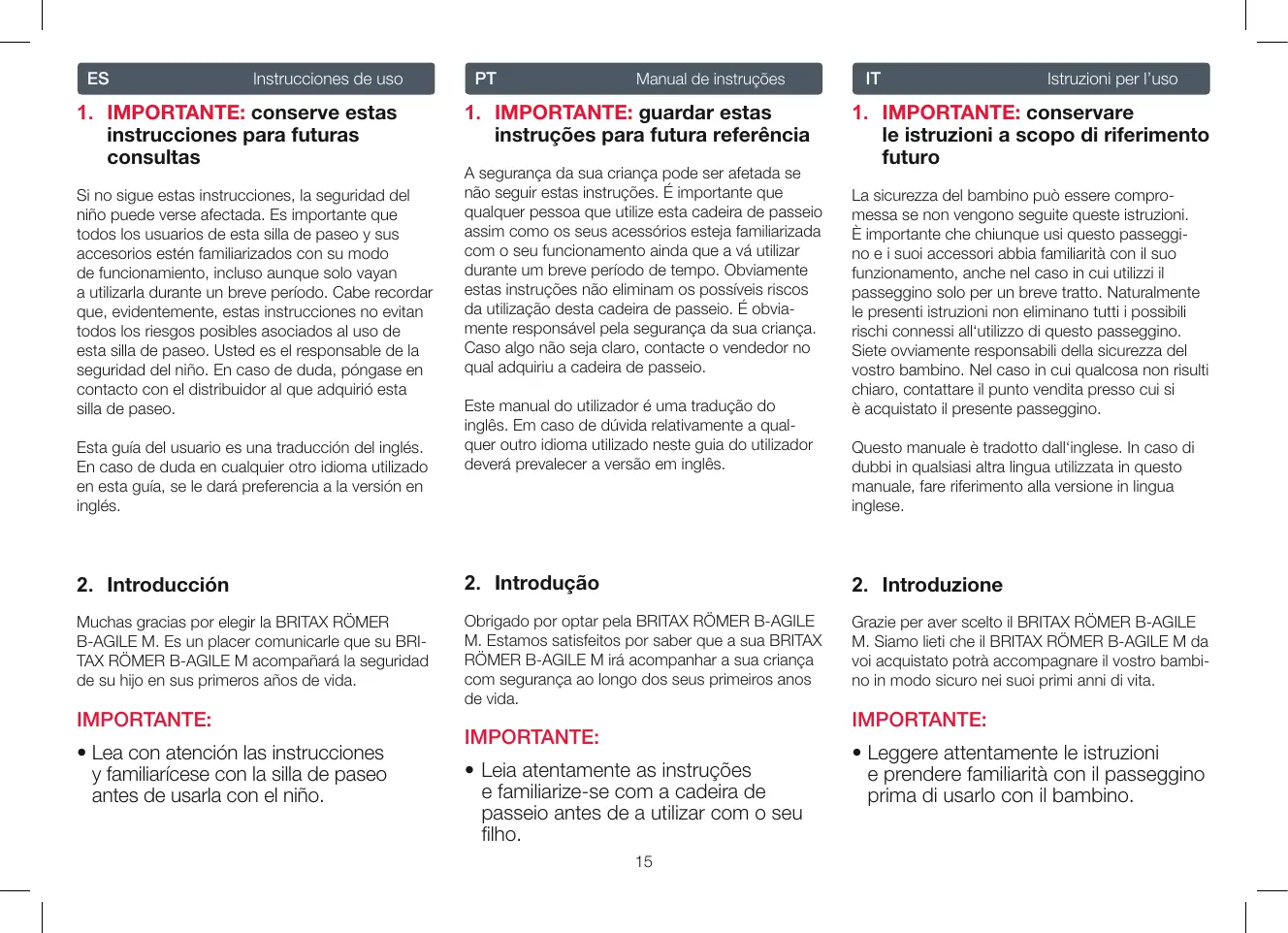 Obrigado por optar pela BRITAX RÖMER B-AGILE M. Estamos satisfeitos por saber que a sua BRITAX RÖMER B-AGILE M irá acompanhar a sua criança com segurança ao longo dos seus primeiros anos de vida.