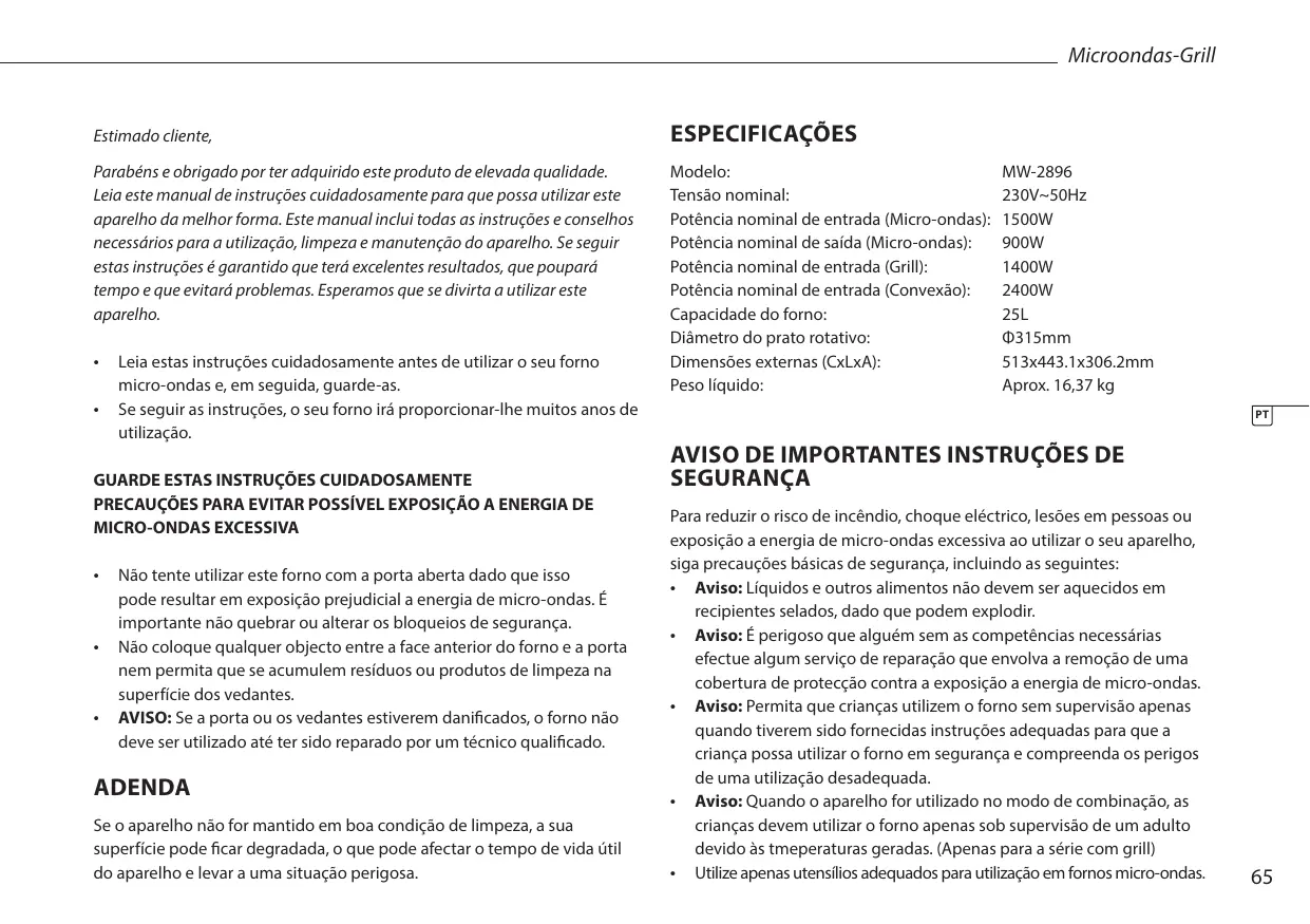 - Leia estas instruções cautadosamente antes de utilizes o seu fornó micro-ondas e, em seguida, guarde-as.