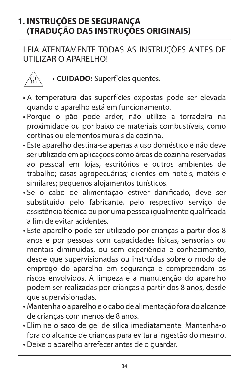 1. Instruções de segurança . . . . . . . . . 34