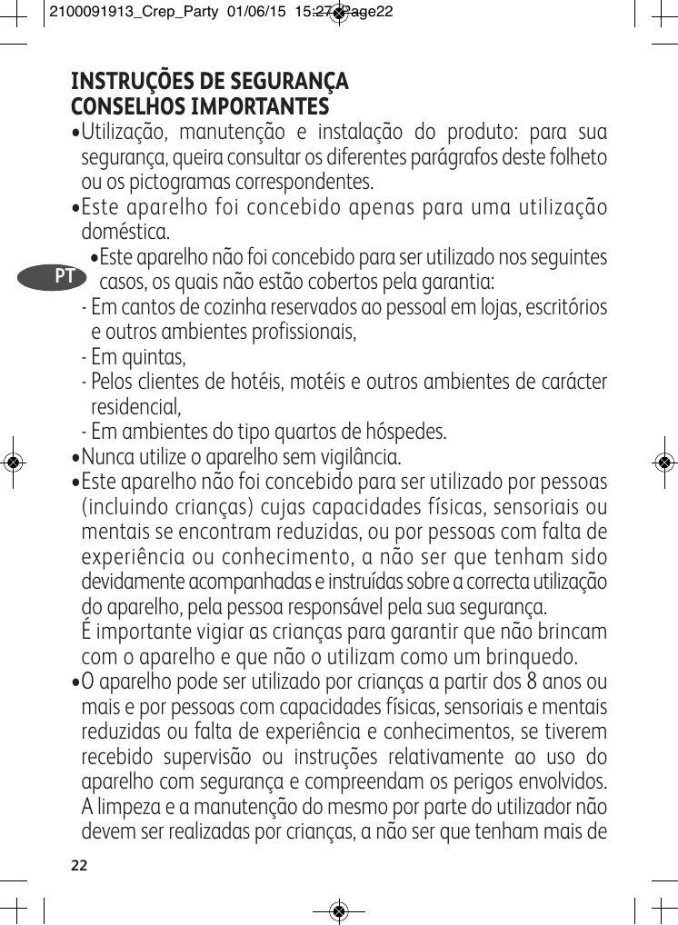 Encontre gratuitamente o manual do aparelho CREP'PARTY DUAL 2 PLAQUES PY604612 TEFAL em formato PDF.