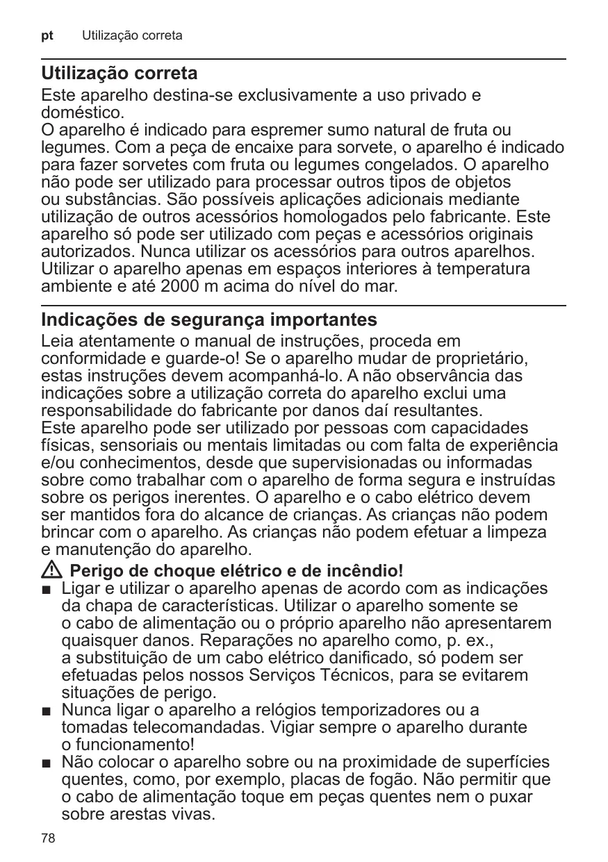 El colector de zumo La palanca de ajuste para pulpa Comprobar el ajuste / la no se puede colocar no está bien ajustada o la junta junta. X «Palanca de ajuste / correctamente sobre no está colocada correctamente. Junta para pulpa» véase la la base motriz. página 72 La palanca de ajuste para pulpa Comprobar el ajuste / la El zumo tiene una consistencia no está bien ajustada o la junta junta. X «Palanca de ajuste / demasiado líquida no está colocada correctamente. Junta para pulpa» véase la o espesa. página 72 Demasiada cantidad de alimen- No procesar grandes cantidades tos en el aparato. al mismo tiempo. El motor del aparato El aparato no está montado Desmontar y volver a montar hace mucho ruido. correctamente. el aparato como se ha descrito anteriormente. X «Preparativos» véase la página 73 Si no puede solucionar algún problema, póngase en contacto con el teléfono de asistencia. Los números de teléfono se encuentran en la última página de estas instrucciones.