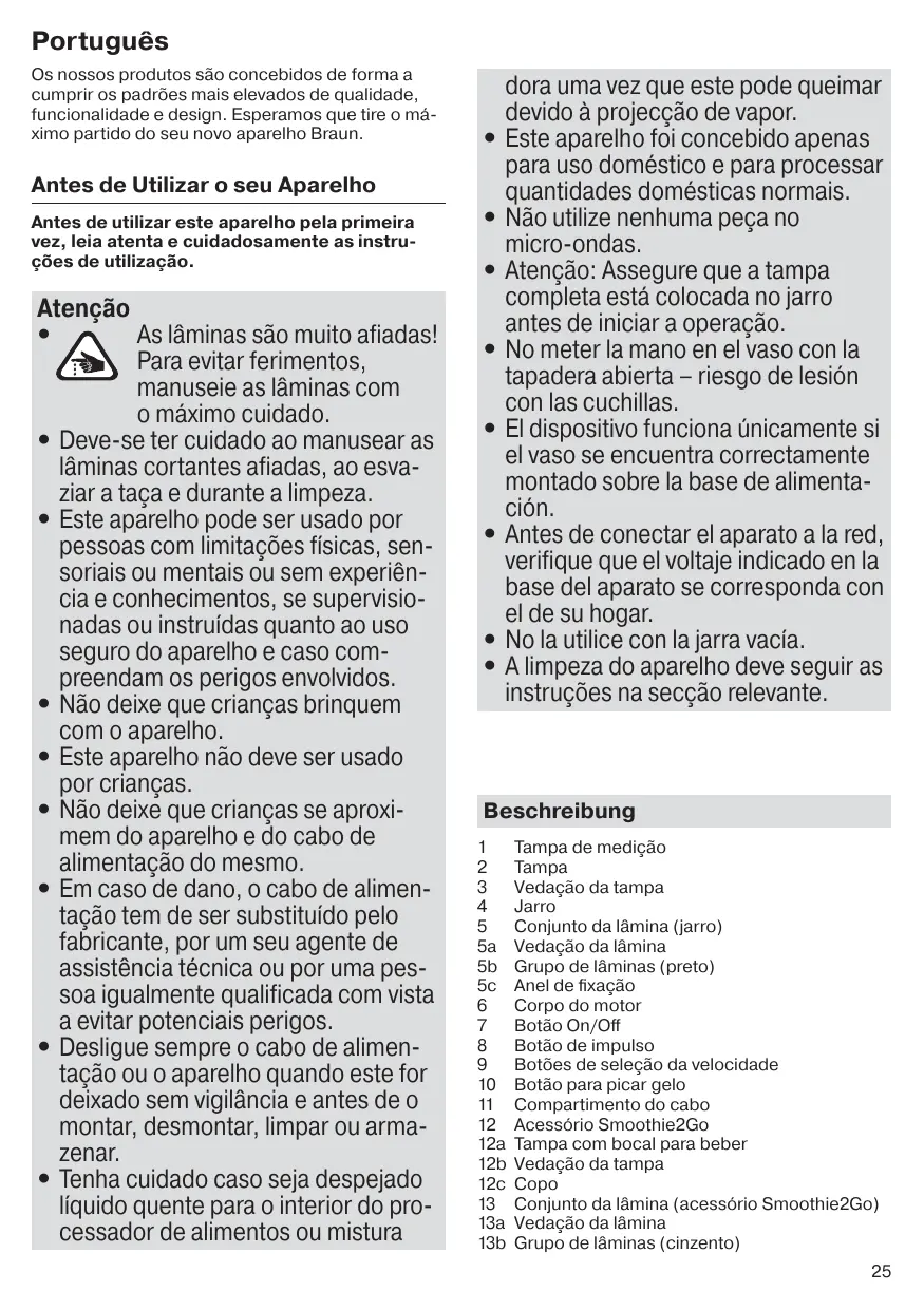JB7192 - Liquidificador BRAUN - Manual de utilização gratuito