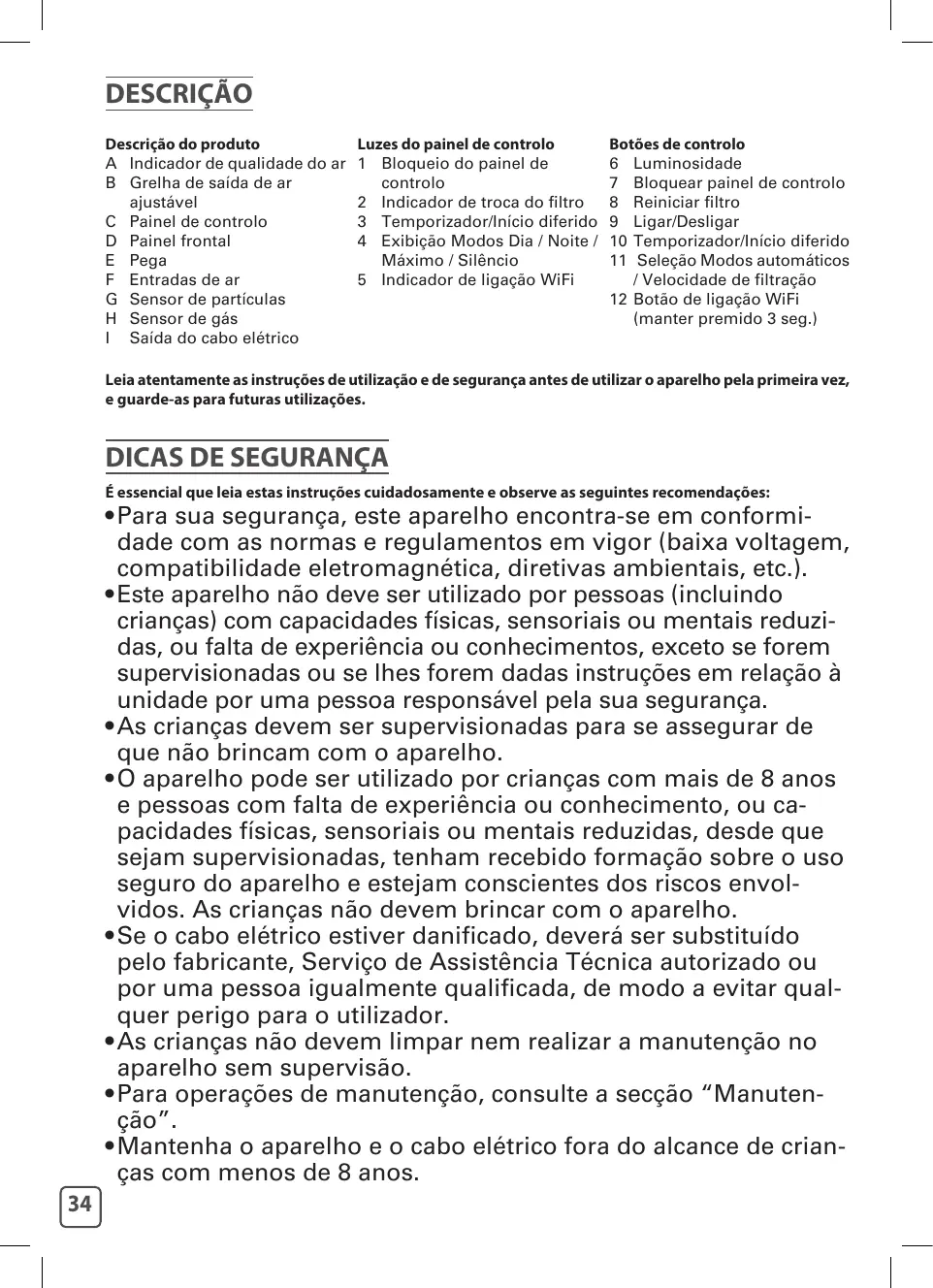6 Luminosité 7 Verrouillage du panneau de contrôle 8 Réinitialisation du filtre 9 Marche/Arrêt 10 Réglage de la Minuterie/Démarrage différé 11 Sélection des Modes automatiques/Vitesse de filtration 12 Bouton de connexion Wi-Fi (à maintenir pendant 3 secondes) Lisez attentivement le mode d’emploi ainsi que les consignes de sécurité avant toute utilisation et conservez ce mode d’emploi.