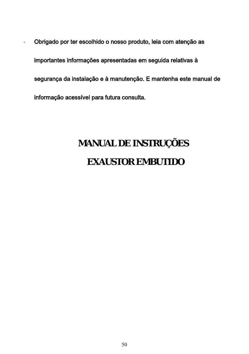 - Leia este manual de instruções antes de instalar e utilizar este exaustor. Guarde este manual de instruções num local seguro para referência futura.
