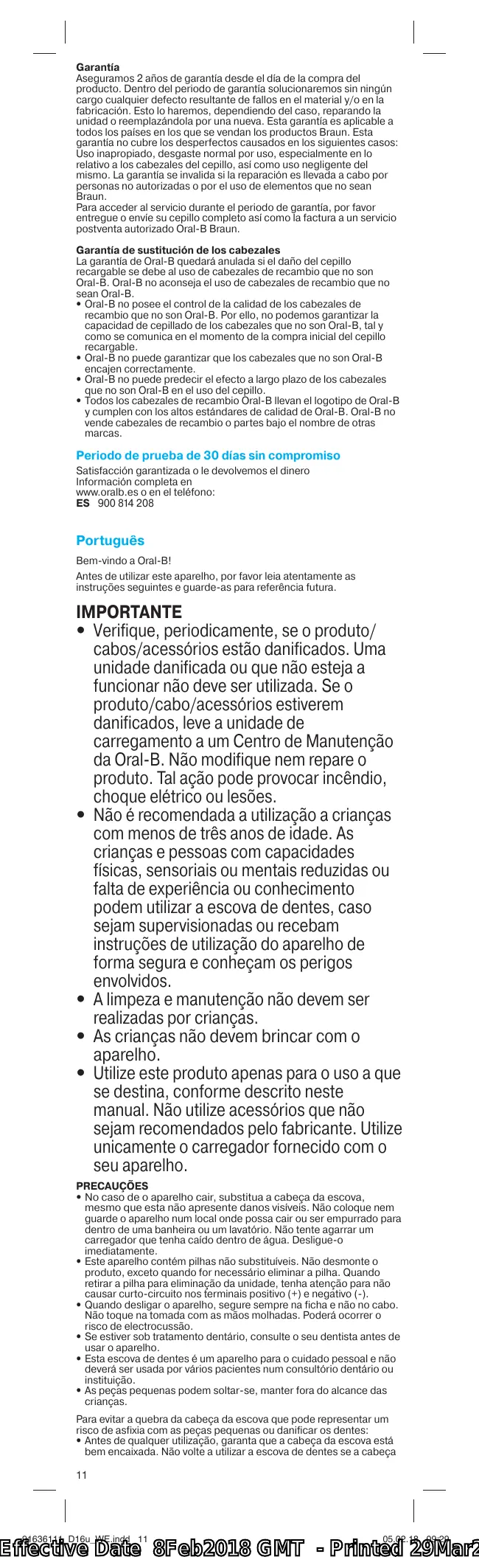 Satisfacción garantizada o le devolvemos el dinero Información completa en www.oralb.es o en el teléfono: ES 900 814 208