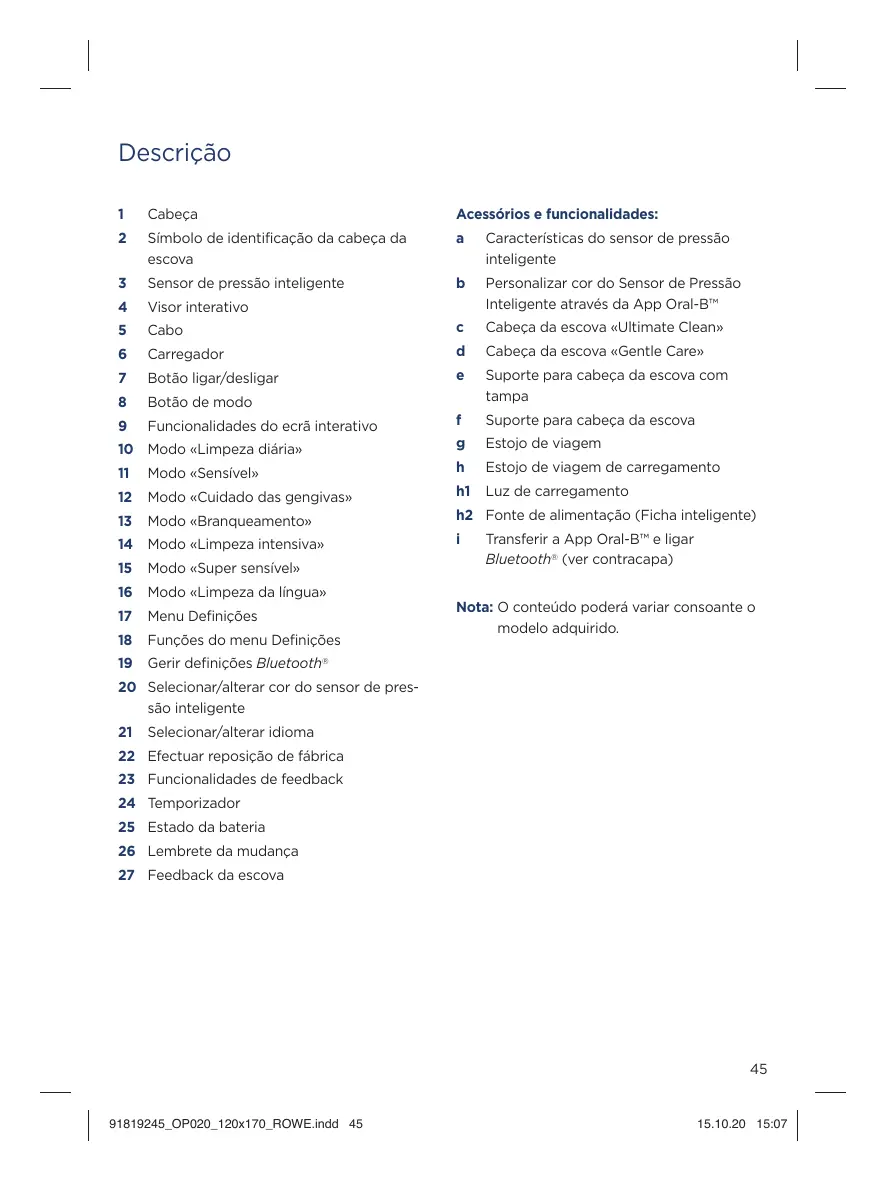 Baixe as instruções para o seu Escova de dentes elétrica em formato PDF gratuitamente! Encontre o seu manual IO SERIES 7 - IO SERIES 7N - IO SERIES 7S - ORL-B IO 7S - ORAL-B e retome o controlo do seu dispositivo eletrónico. Nesta página estão publicados todos os documentos necessários para a utilização do seu dispositivo. IO SERIES 7 - IO SERIES 7N - IO SERIES 7S - ORL-B IO 7S da marca ORAL-B.
