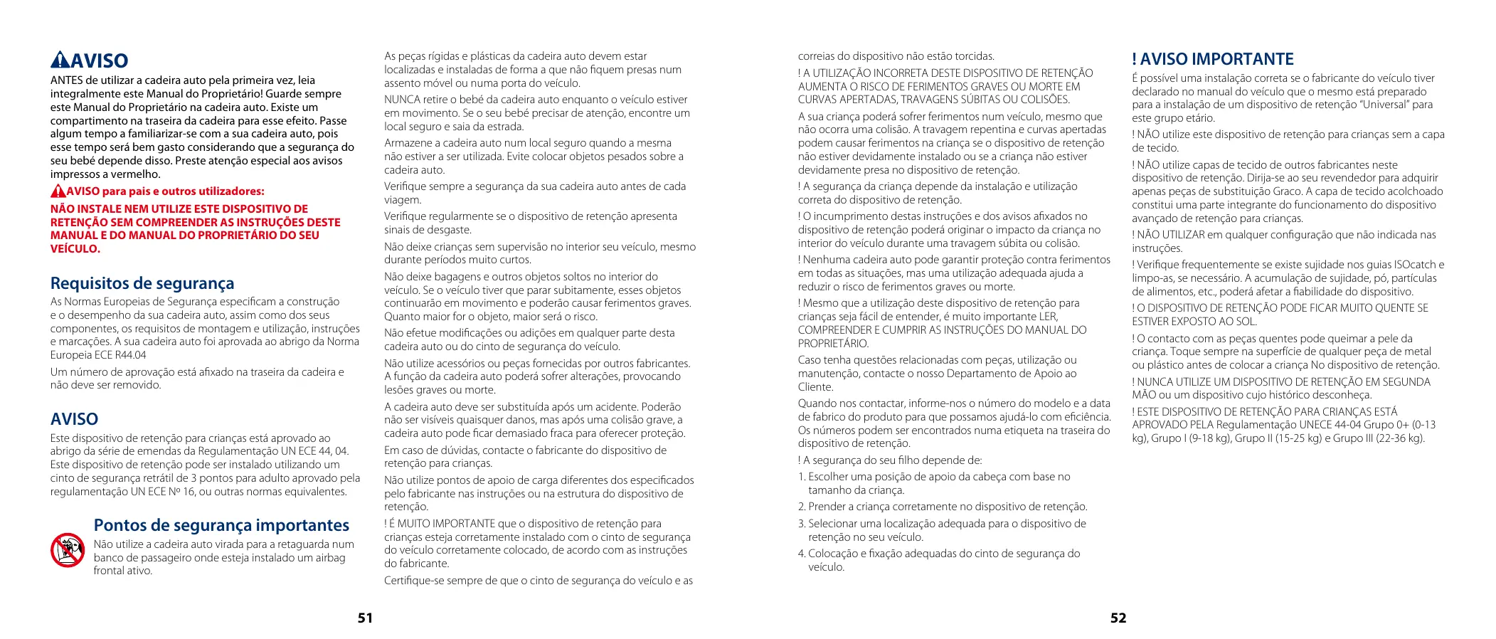 AVISO Este dispositivo de sujeción para niños está aprobado por la serie de enmiendas de la norma europea UN ECE 44. 04. Este dispositivo de sujeción para niños se puede instalar utilizando un cinturón retráctil para adultos de 3 puntos de sujeción aprobado por la norma No. 16 de UN ECE u otro estándar equivalente.