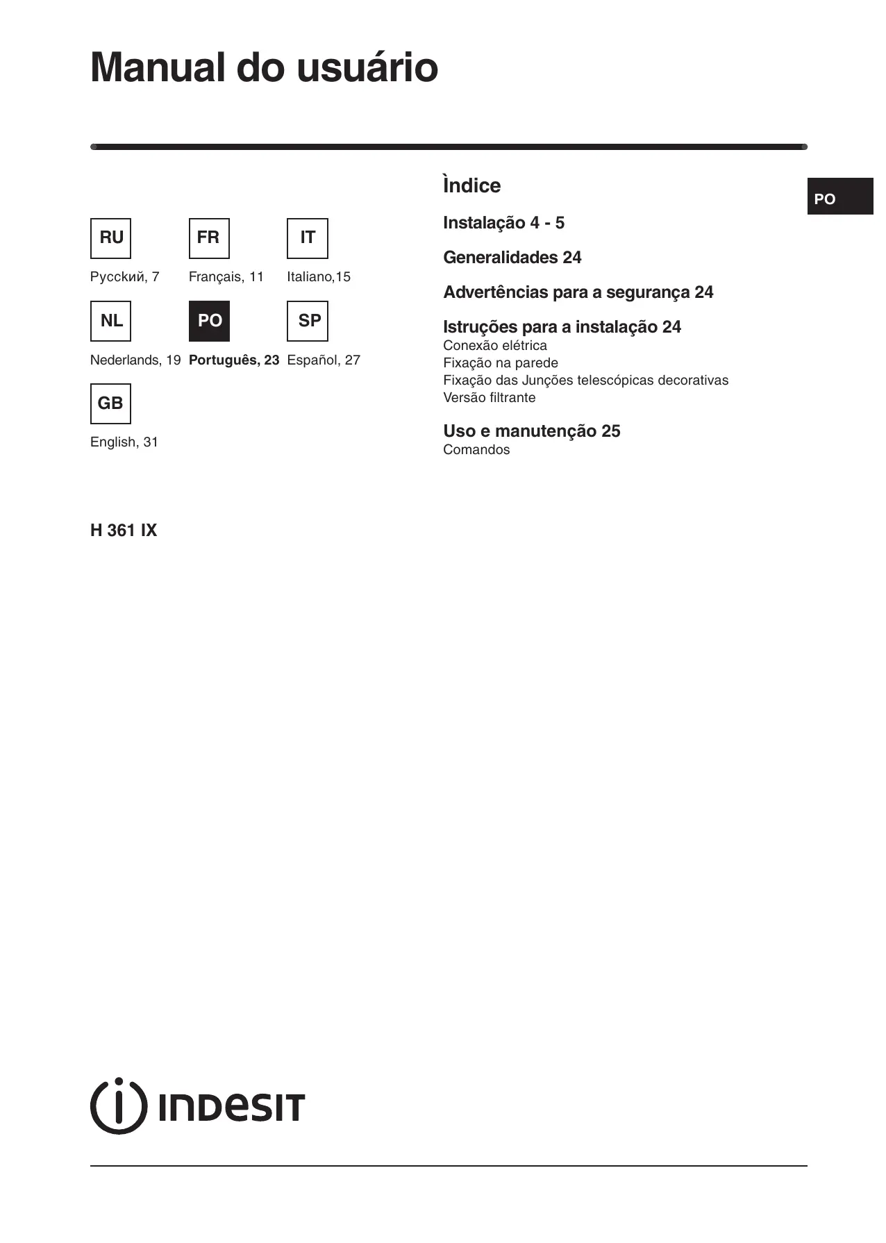 Encontre gratuitamente o manual do aparelho H 391 IX INDESIT em formato PDF.