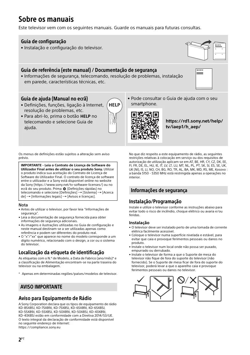 Encontre gratuitamente o manual do aparelho KD-55X85J - KD-65X85J - KD-75X85J - KD85X85J SONY em formato PDF.