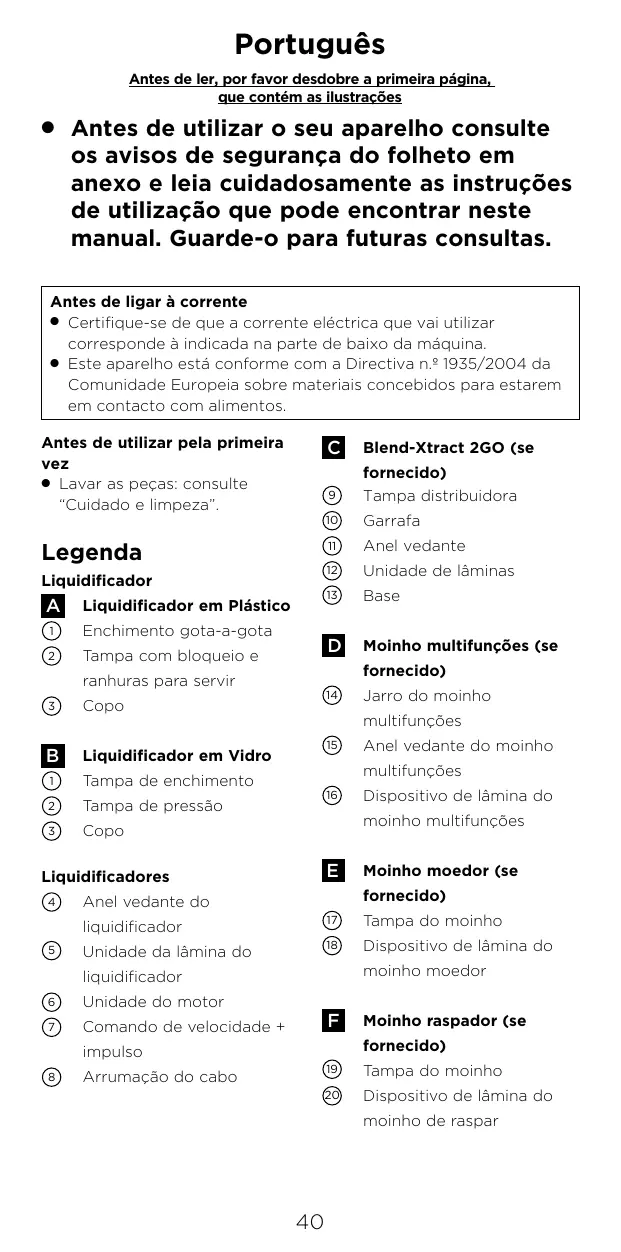 BLP31.A0WH - Liquidificador KENWOOD - Manual de utilização gratuito