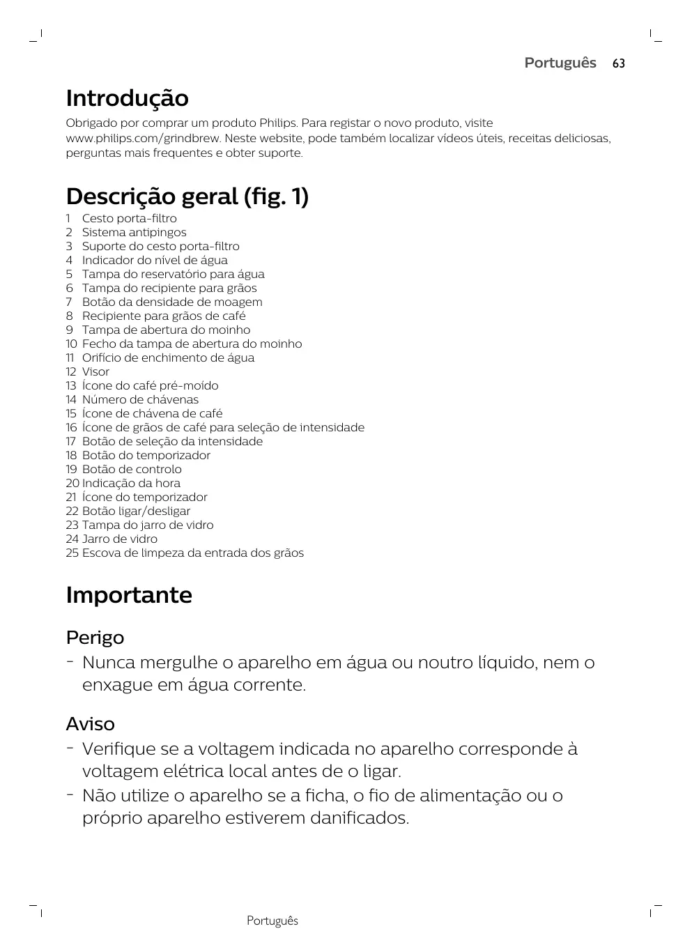 Encontre gratuitamente o manual do aparelho GRIND & BREW HD7768 PHILIPS em formato PDF.