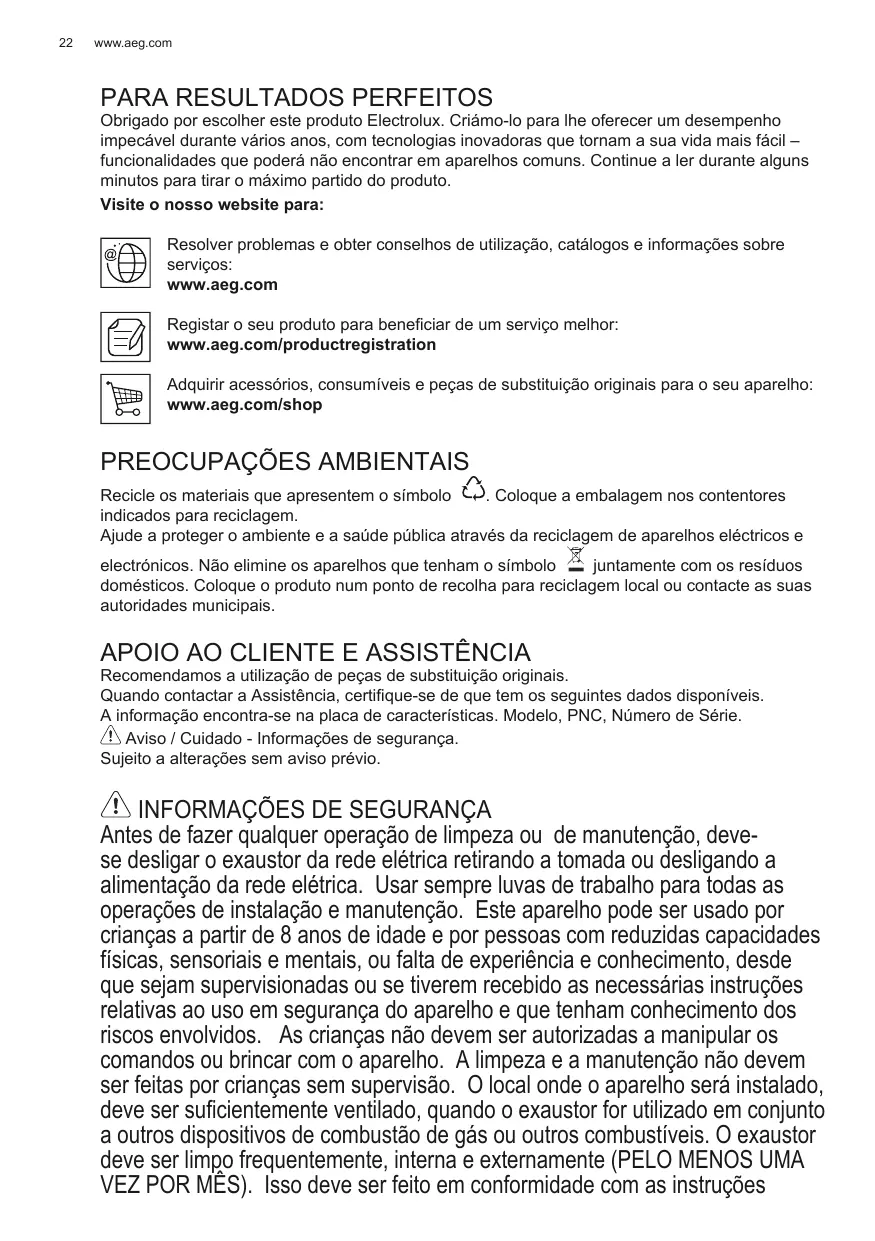 Enregistrer votre produit pour obtenir un meilleur service : www.aeg.com/productregistration Acheter des accessoires, consommables et pièces de rechange d’origine pour votre appareil : www.aeg.com/shop