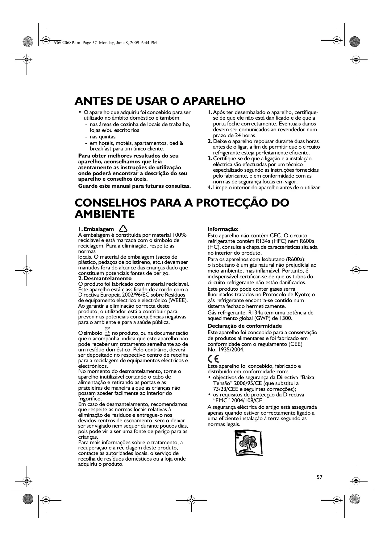 V7 G3602068H.fm Page 156 Monday, June 8, 2009 7:01 PM HASZNAÂLATI UTASITAS A KÉSZÜLÉK HASZNÂLATA ELÔTT KÔRNYEZETVÉDELMI TANÂCSOK
