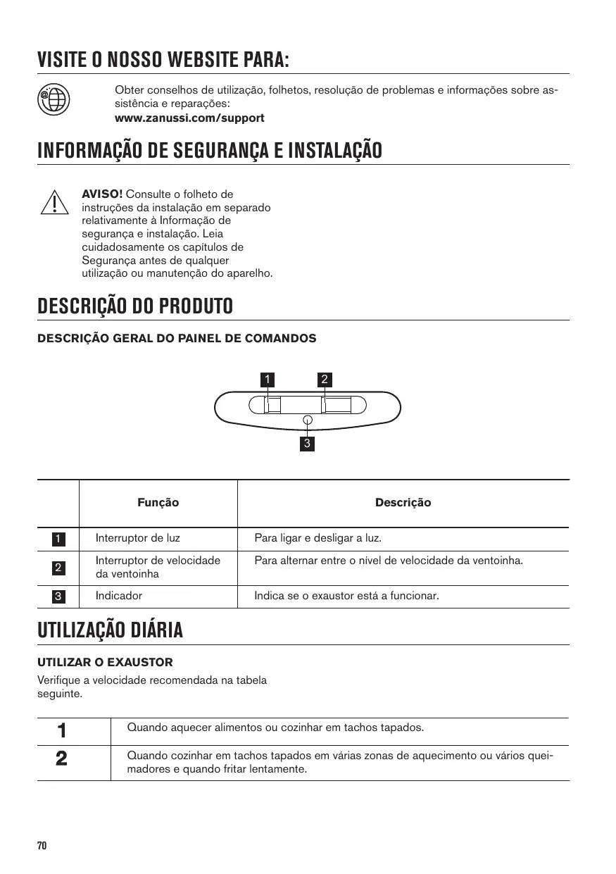 VISITE O NOSSO WEBSITE PARA: Obter conselhos de utilização, folhetos, resolução de problemas e informações sobre assistência e reparações: www.zanussi.com/support