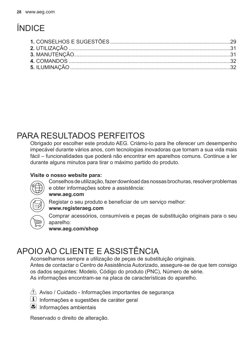 Lorsque vous contactez le Service Après-Vente agréé, munissez-vous des données suivantes : Modèle, Code produit (PNC), Numéro de série. Les informations se trouvent sur la plaque des données. Avertissement / Attention – Informations importantes pour la sécurité Conseils et suggestions Informations sur l’environnement Sous réserve de modifications.