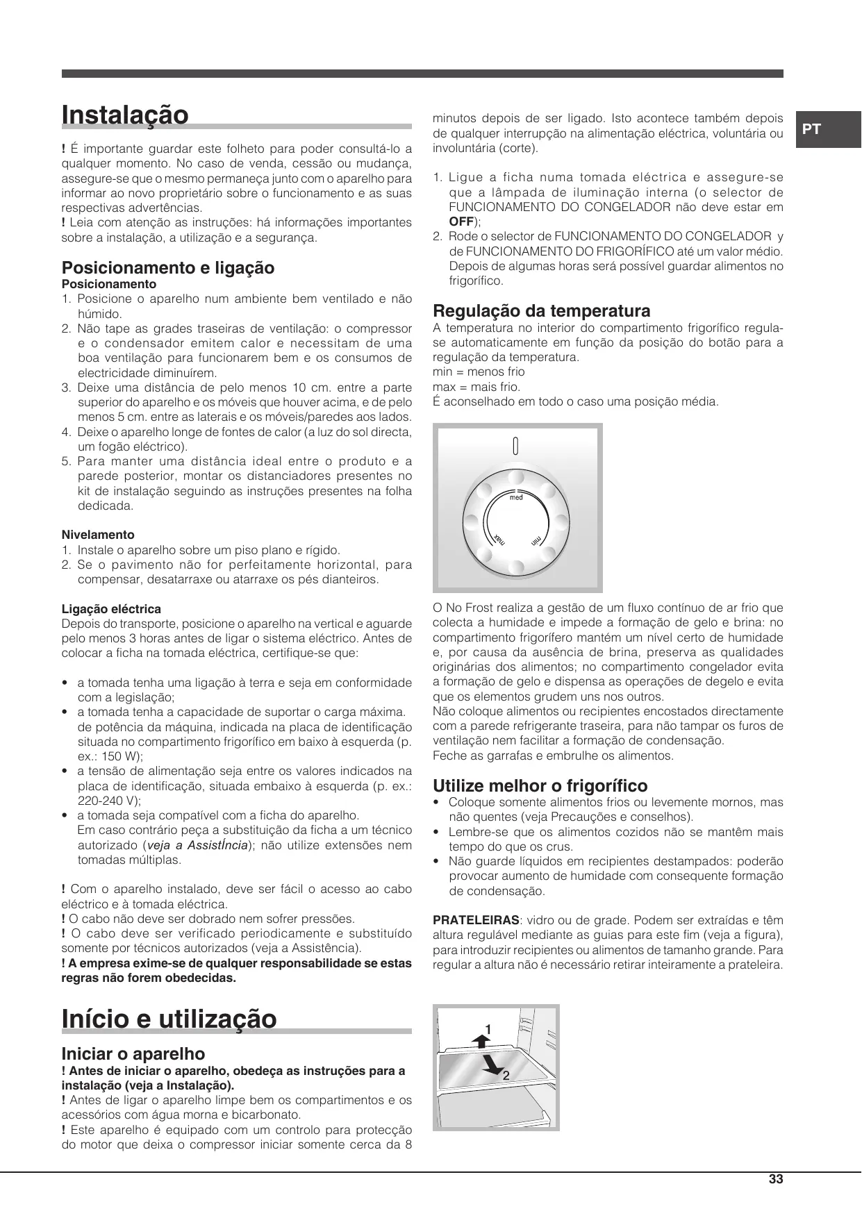 Le réglage de la température à l’intérieur du compartiment réfrigérateur est automatique en fonction de la position du bouton du thermostat. min = moins froid max = plus froid