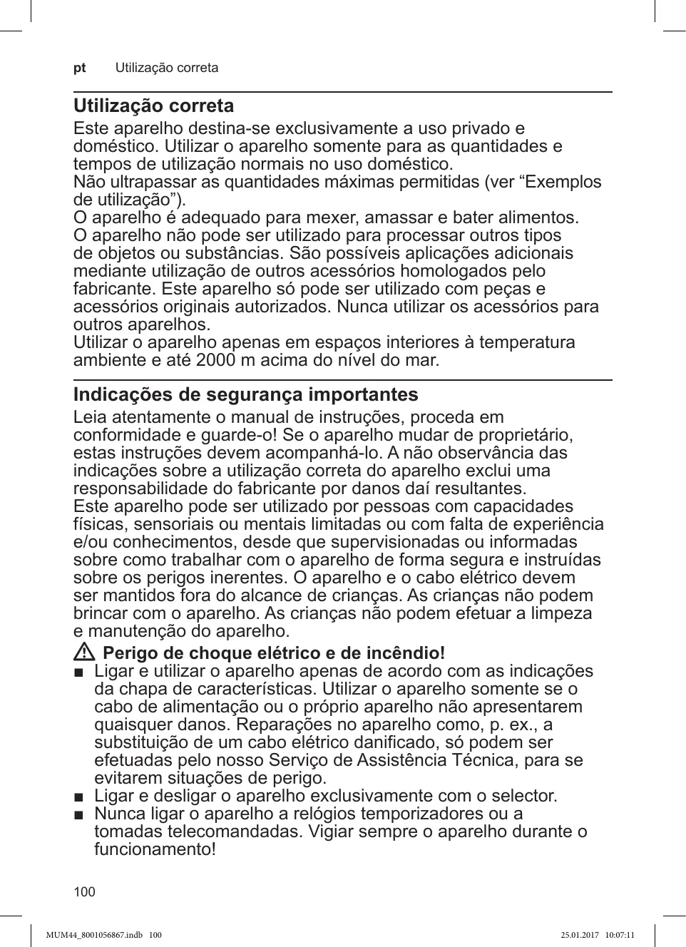 Este aparelho pode ser utilizado por pessoas com capacidades fisicas, sensoriais ou mentais limitadas ou com falta de experiência e/ou conhecimentos, desde que supervisionadas ou informadas sobre como trabalhar com o aparelho de forma segura e instruidas sobre os perigos inerentes. O aparelho e o cabo elétrico devem ser mantidos fora do alcance de crianças. As crianças näo podem brincar com o aparelho. As crianças näo podem efetuar a limpeza e manutençäo do aparelho.