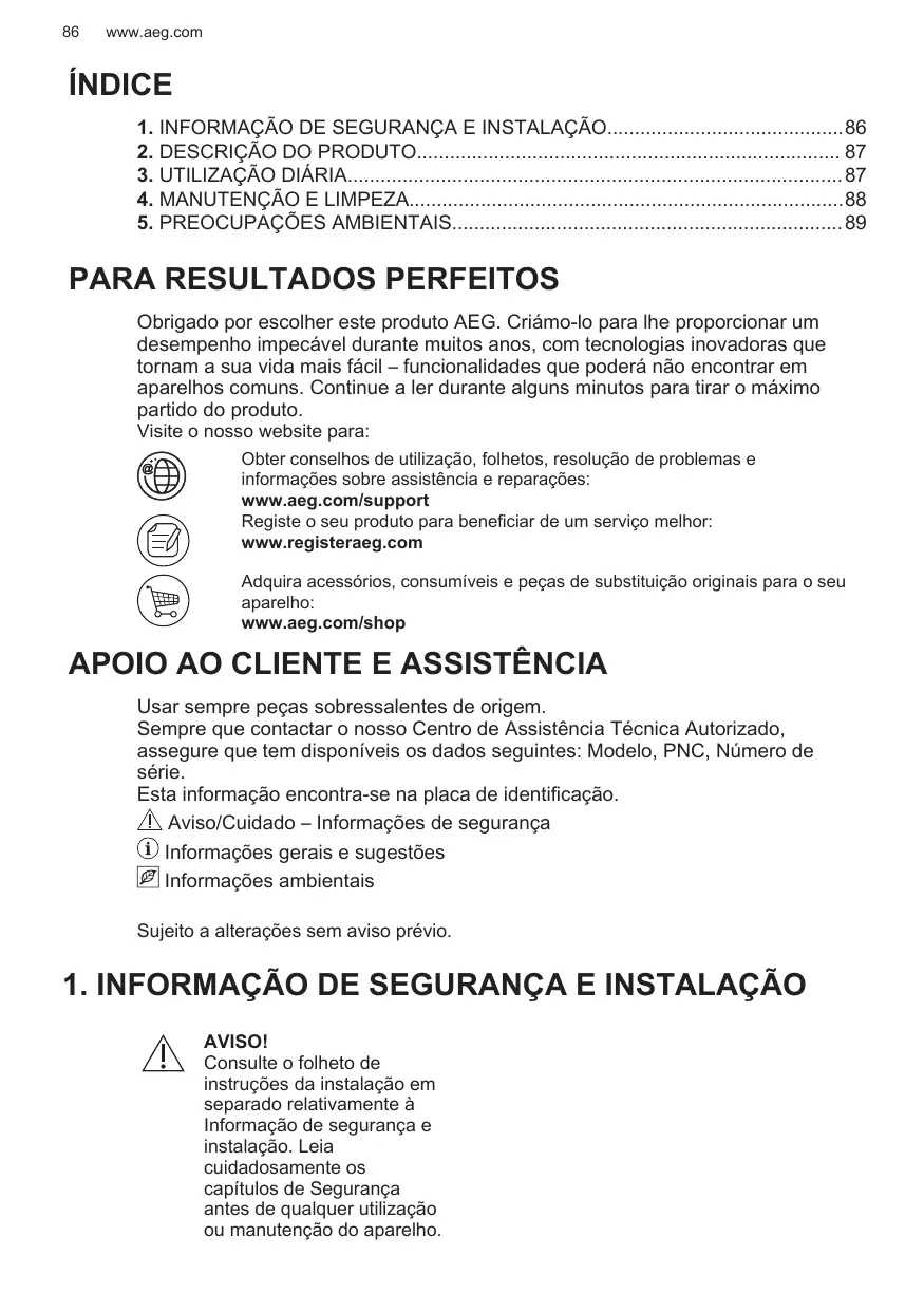Enregistrer votre produit pour un meilleur service : www.registeraeg.com Acheter des accessoires, consommables et pièces de rechange d’origine pour votre appareil : www.aeg.com/shop