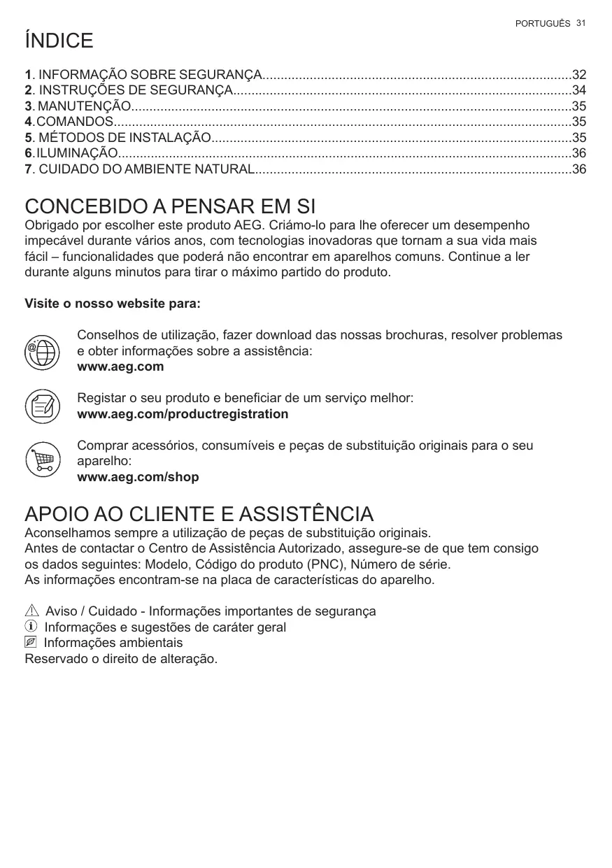 Lorsque vous contactez le Service Après-Vente agréé, munissez-vous des données suivantes : Modèle, Code produit (PNC), Numéro de série. Les informations se trouvent sur la plaque des données. Avertissement / Attention – Informations importantes pour la sécurité Conseils et suggestions Informations sur l’environnement Sous réserve de modifications.
