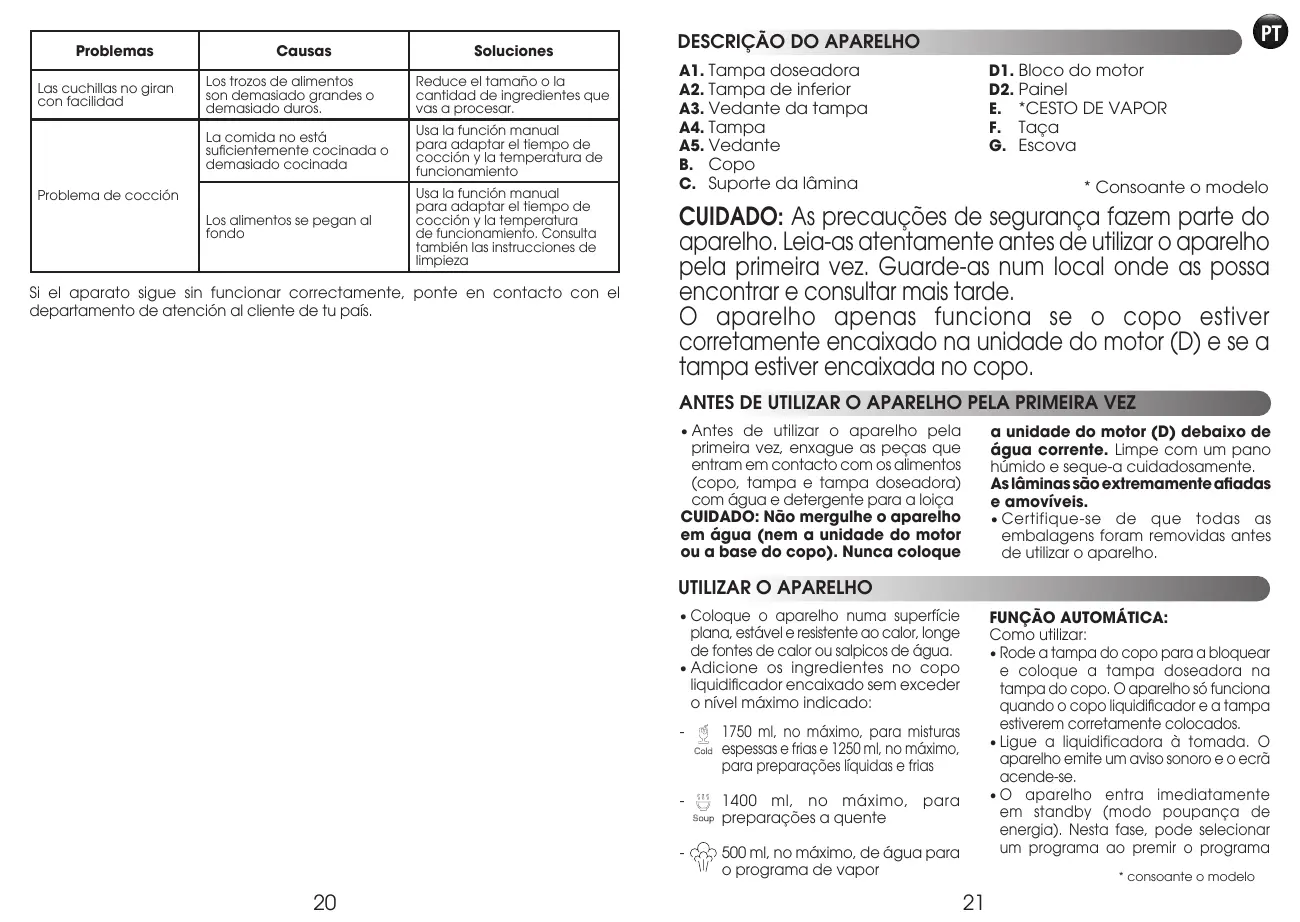 Encontre gratuitamente o manual do aparelho PERFECT MIX COOK LM835D10 MOULINEX em formato PDF.