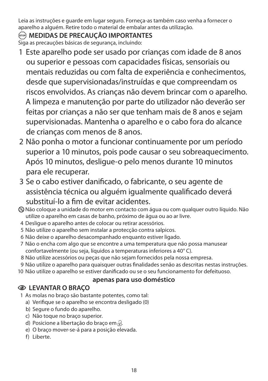 H N’immergez pas le bloc moteur dans du liquide, n’utilisez pas l’appareil dans une salle de bain, à proximité d’une source d’eau ou à l’extérieur.