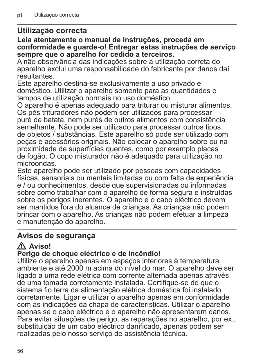 Cet appareil est destiné exclusivement à une utilisation domestique et non professionnelle. Utiliser cet appareil uniquement pour des quantités de préparations culinaires courantes et pour des durées de service normales. L’appareil ne convient que pour broyer et / ou mélanger des produits alimentaires. L’appareil n’est pas adapté pour la préparation de purée de pommes de terre (ou de purées d’aliments de consistance similaire). Il ne doit pas servir à transformer d’autres substances / objets. Utiliser l’appareil avec les pièces et accessoires d’origine uniquement. Ne jamais poser l’appareil sur des surfaces chaudes (tables de cuisson par ex.) ou à proximité de celles-ci. Le bol mixeur ne va pas au four micro-ondes. Cet appareil peut être utilisé par des personnes aux capacités physiques, sensorielles ou mentales réduites ou des personnes inexpérimentées, à condition qu’elles soient surveillées ou qu’elles aient été informées de l’utilisation de l’appareil et qu’elles comprennent les risques inhérents à son usage. Il faut tenir les enfants à l’écart de l’appareil et du cordon de branchement et ne pas leur permettre d’utiliser l’appareil. Ne pas laisser les enfants jouer avec l’appareil. Le nettoyage et l’entretien incombant à l’utilisateur ne doivent pas être effectués par des enfants.