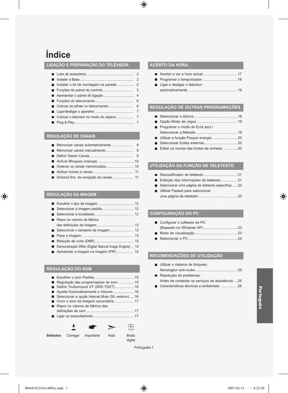 - Ligar e desligar o televisor automaticamente p. 18