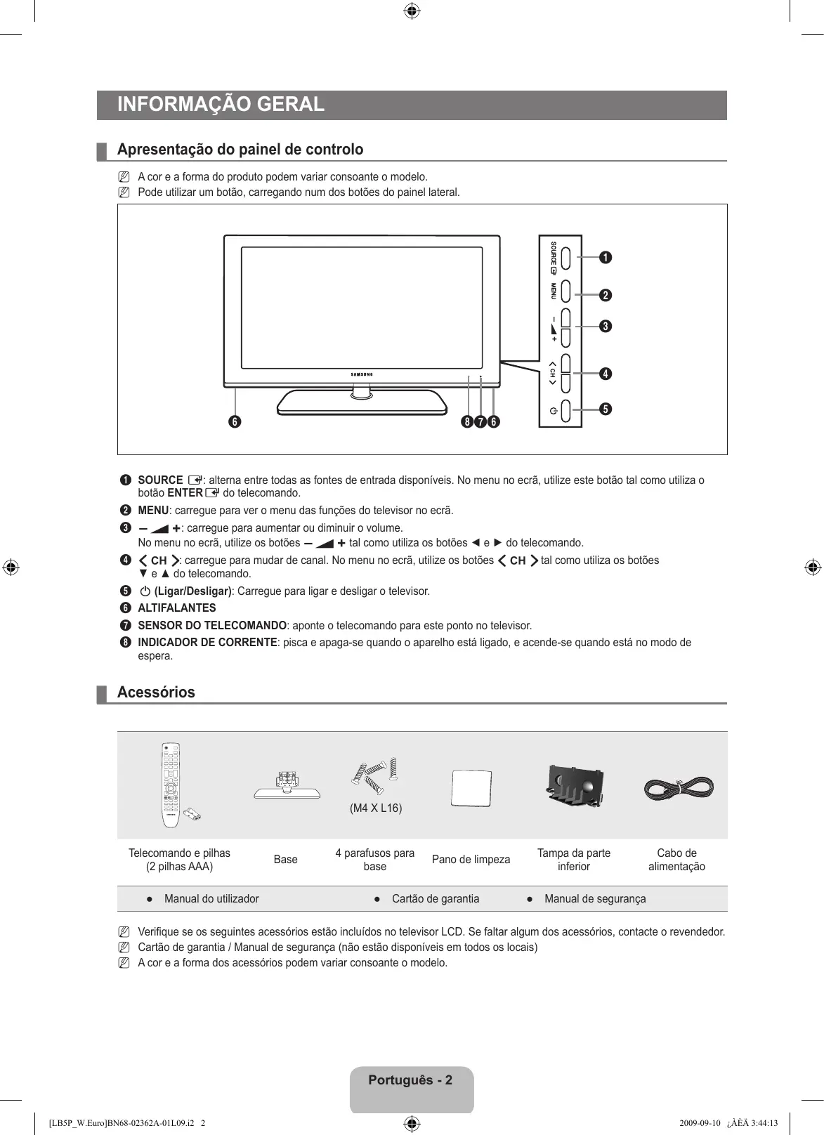 Baixe as instruções para o seu Televisor em formato PDF gratuitamente! Encontre o seu manual LE32B530P7W - SAMSUNG e retome o controlo do seu dispositivo eletrónico. Nesta página estão publicados todos os documentos necessários para a utilização do seu dispositivo. LE32B530P7W da marca SAMSUNG.