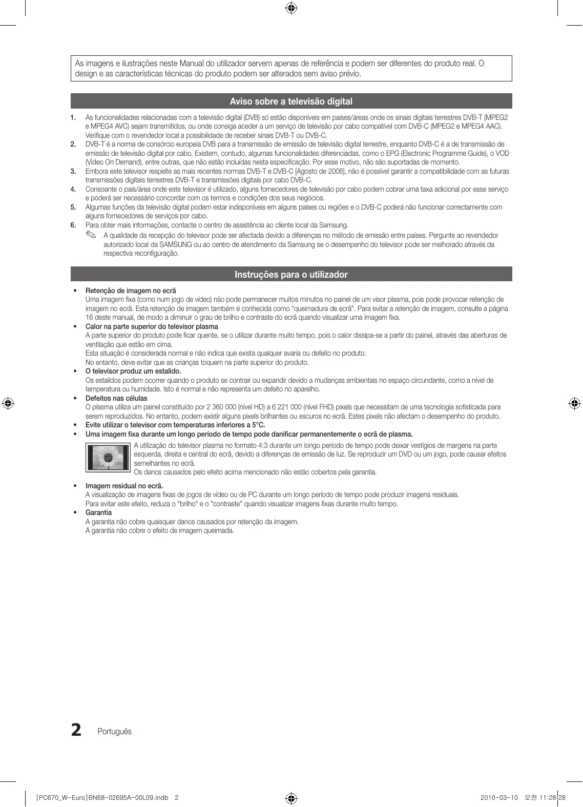 2010-03-10 오전 11:28:28 As imagens e ilustrações neste Manual do utilizador servem apenas de referência e podem ser diferentes do produto real. O design e as características técnicas do produto podem ser alterados sem aviso prévio. Aviso sobre a televisão digital