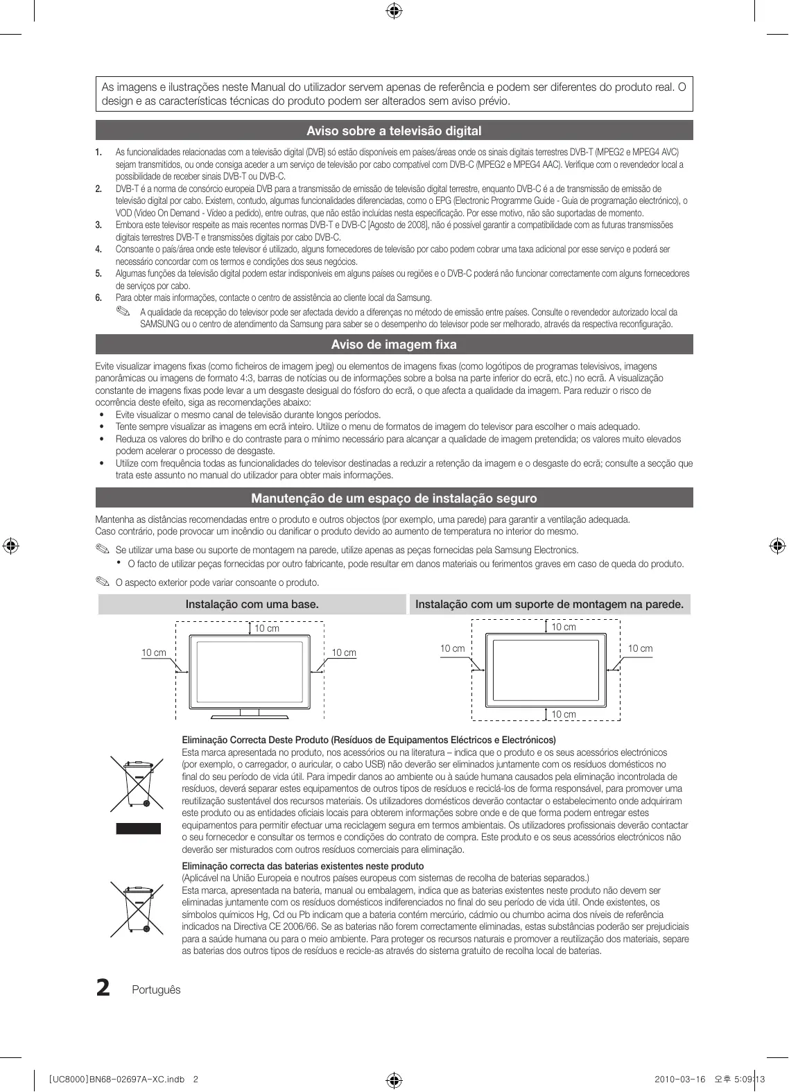 2010-03-16 오후 5:09:12 This page is intentionally left blank. [UC8000]BN68-02697A-XC.indb 64 2010-03-16 오후 5:09:12 As imagens e ilustrações neste Manual do utilizador servem apenas de referência e podem ser diferentes do produto real. O design e as características técnicas do produto podem ser alterados sem aviso prévio. Aviso sobre a televisão digital