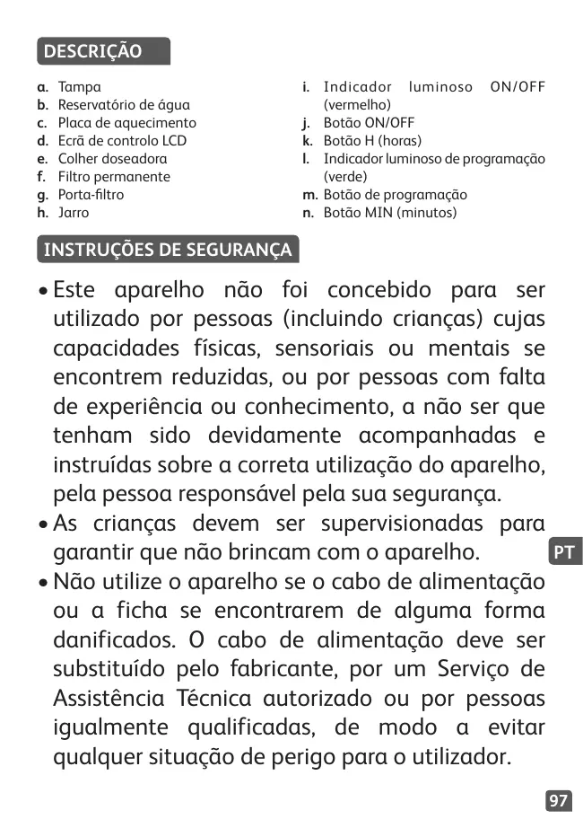 únicamente el asa de la jarra de cristal durante la fase de calentamiento y hasta que se enfríe. • Los niños menores de 8 años podrán utilizar el aparato siempre bajo supervisión, si han recibido instrucciones sobre el uso del aparato