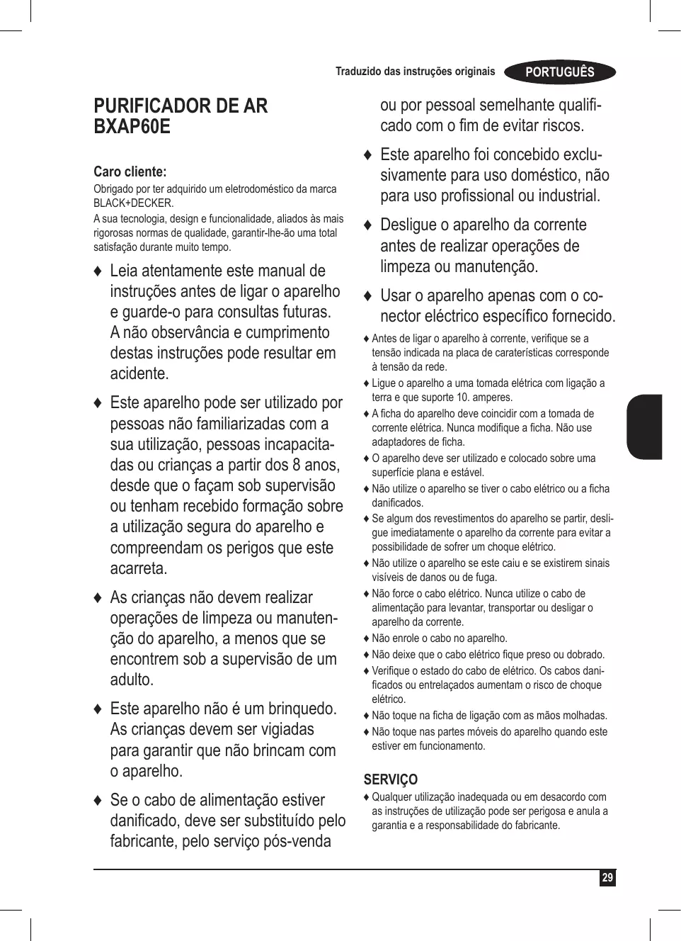MANUAL DE UTILIZADOR BXAP60E BLACK & DECKER