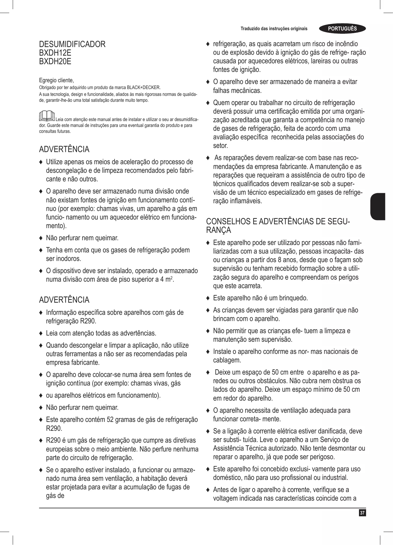 PORTUGUÊS Traduzido das instruções originais