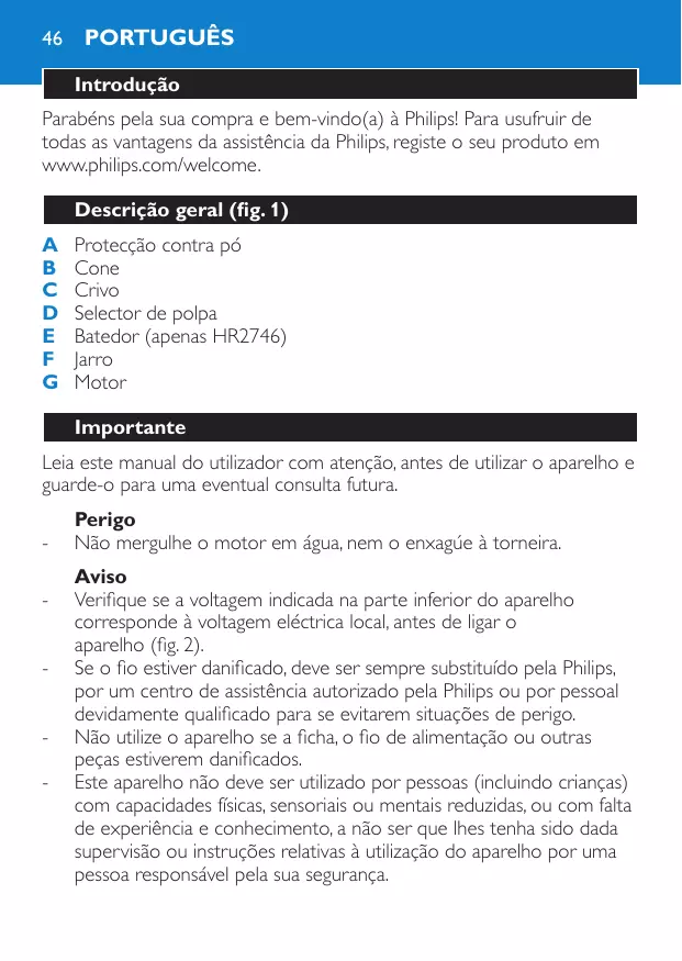 Encontre gratuitamente o manual do aparelho HR2746 PHILIPS em formato PDF.