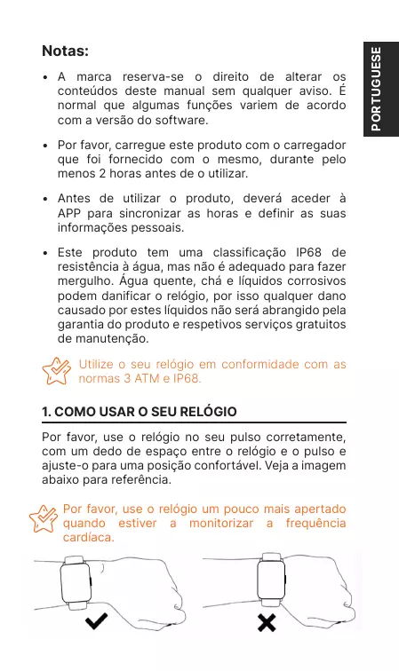 1. COMMENT PORTER VOTRE MONTRE Veuillez porter la montre au poignet en l’ajustant de manière correcte et confortable, à environ un doigt du carpe, comme sur la photo ci-dessous.