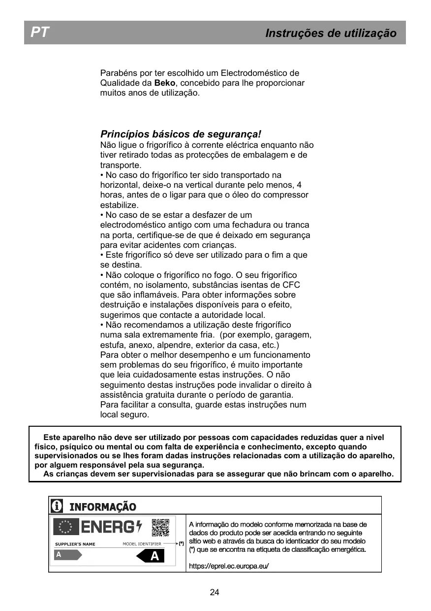 Encontre gratuitamente o manual do aparelho RDSA240K40WN BEKO em formato PDF.