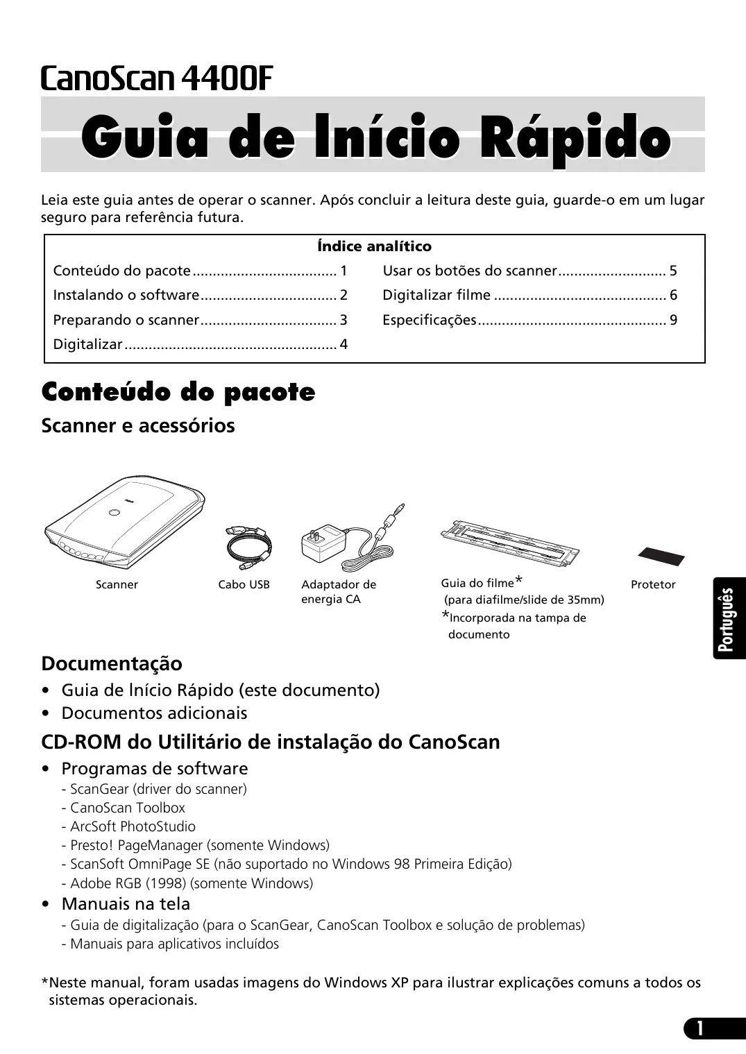Encontre gratuitamente o manual do aparelho CANOSCAN 4400F CANON em formato PDF.