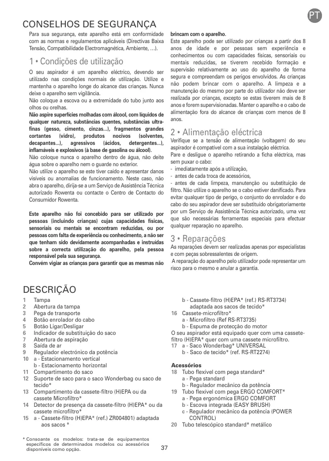 Encontre gratuitamente o manual do aparelho ASPIRATEUR TRAINEAU RO5S4635 ROWENTA em formato PDF.