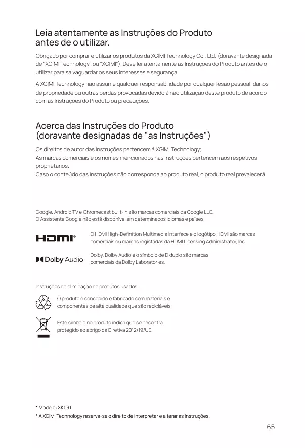 Encontre gratuitamente o manual do aparelho MOGO XGIMI em formato PDF.