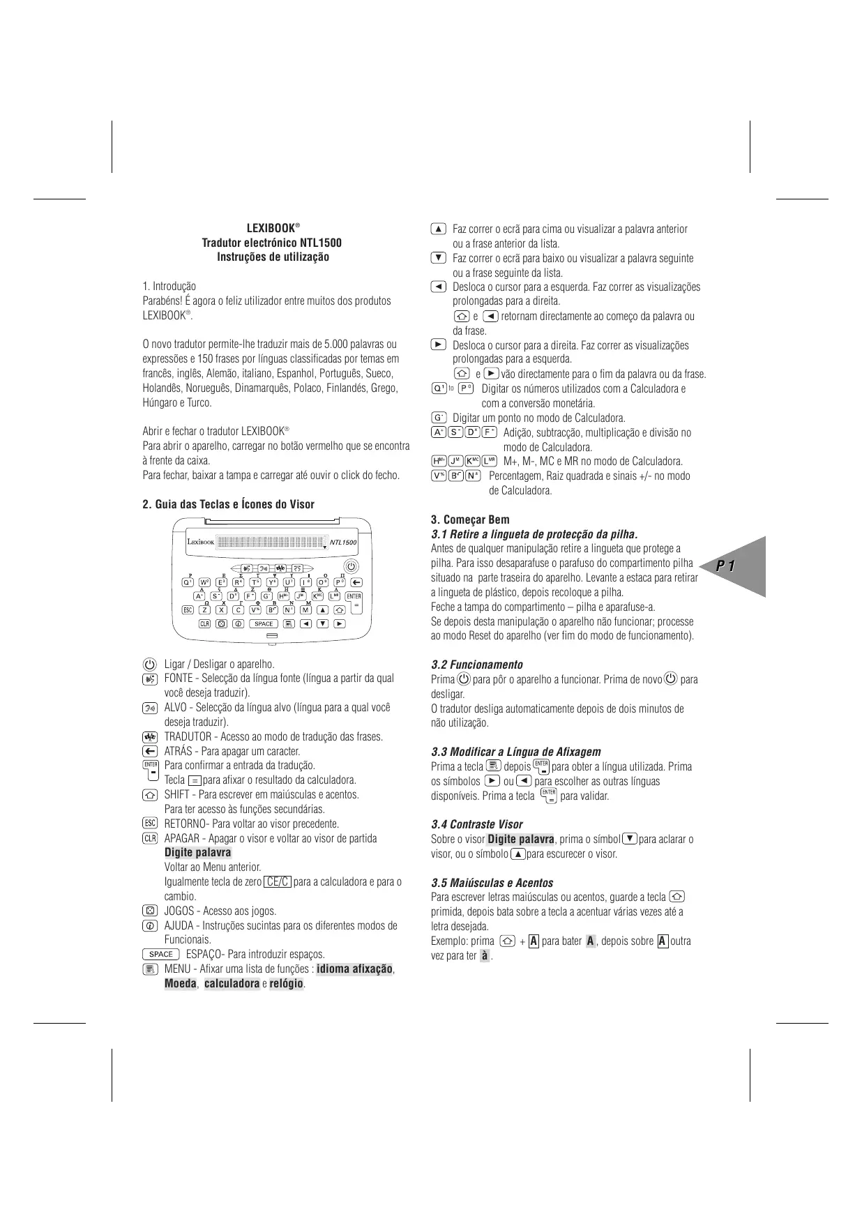 LfNTL 1500 - Tradutor eletrônico LEXIBOOK - Manual de utilização gratuito